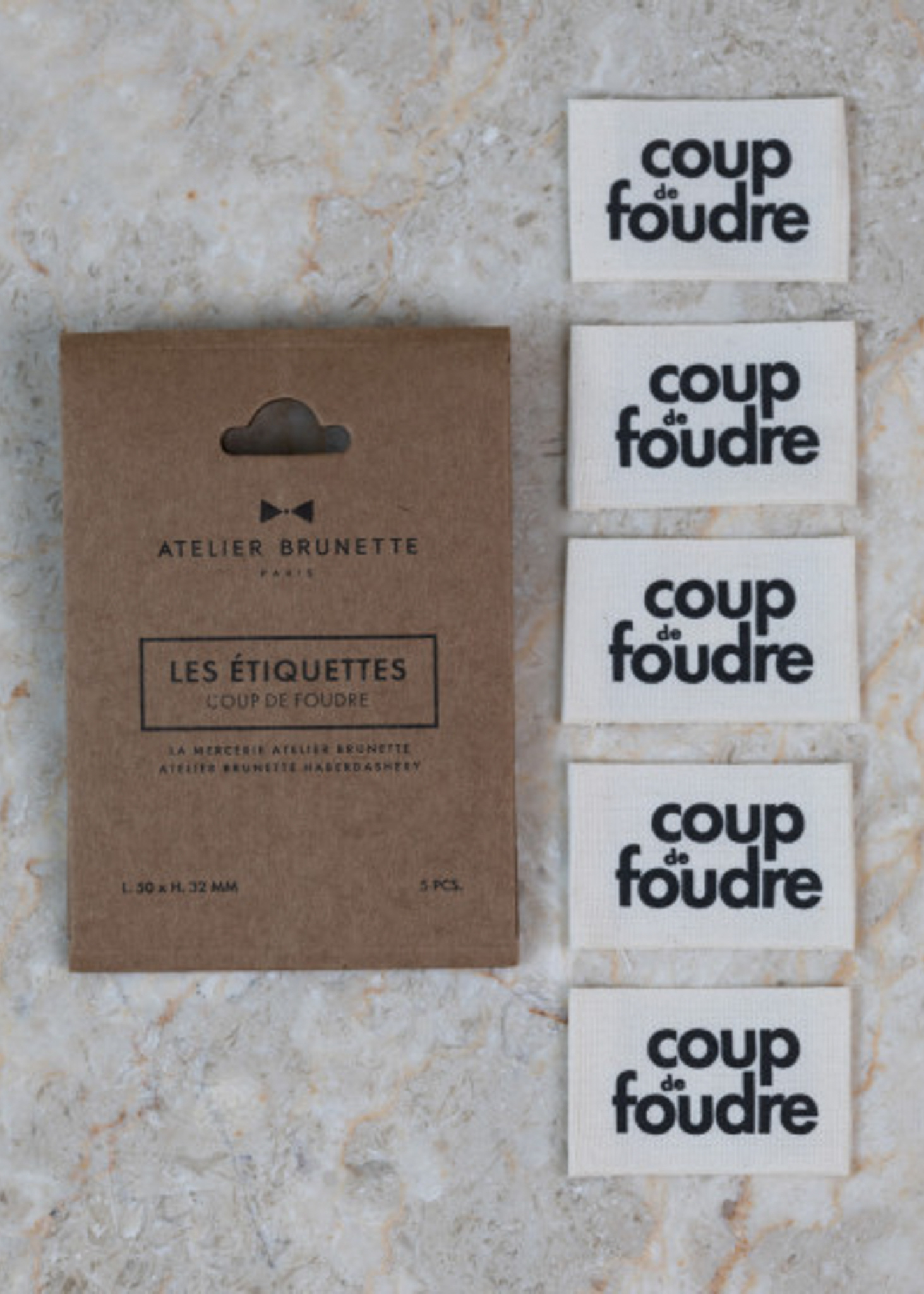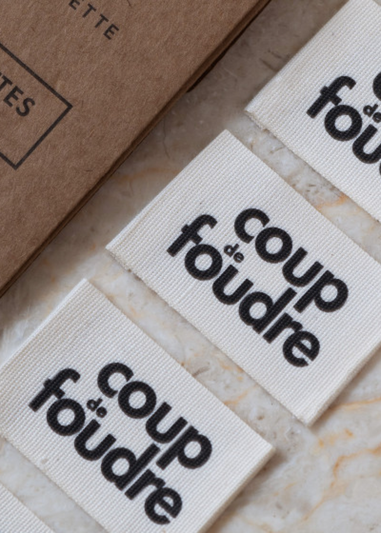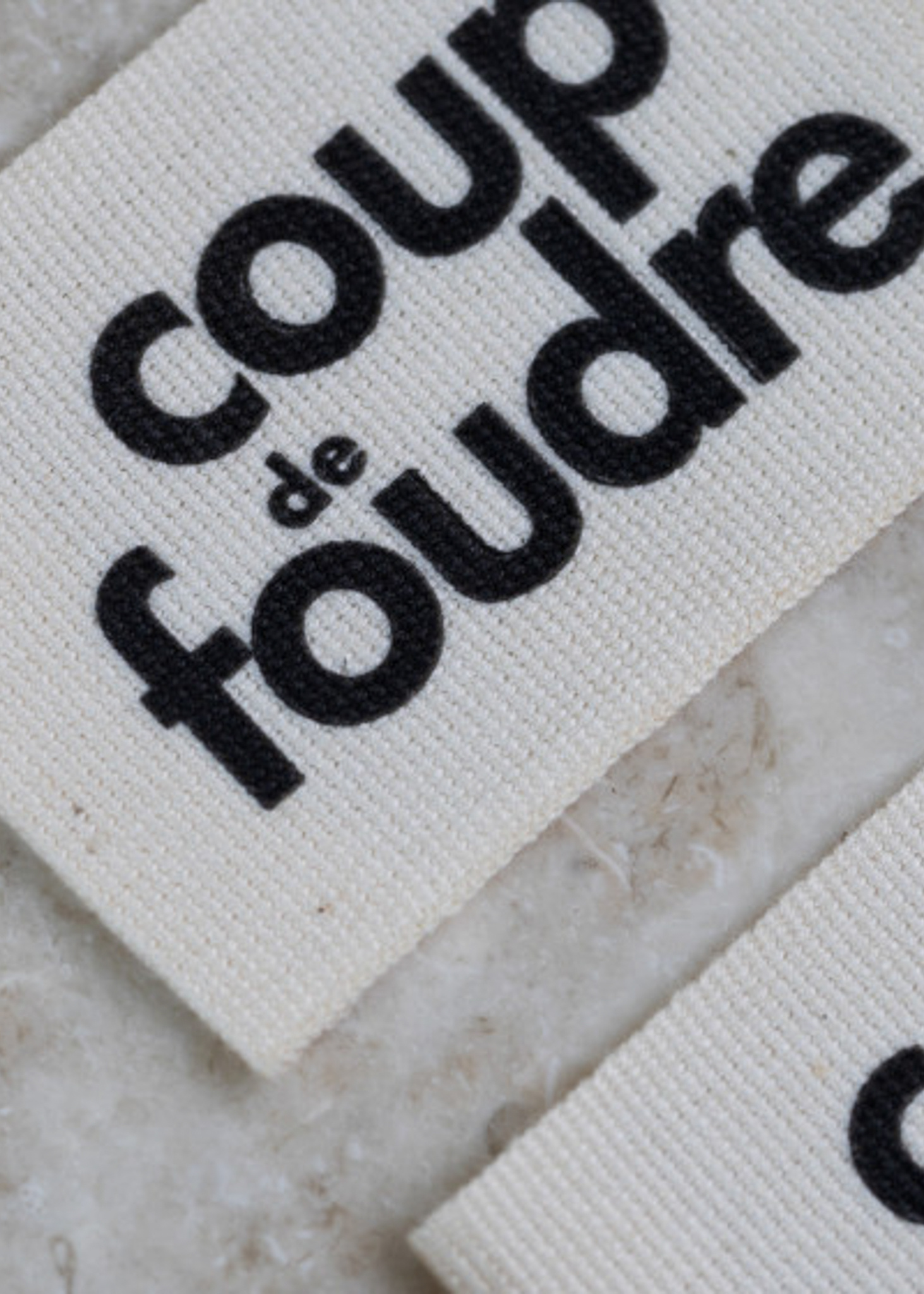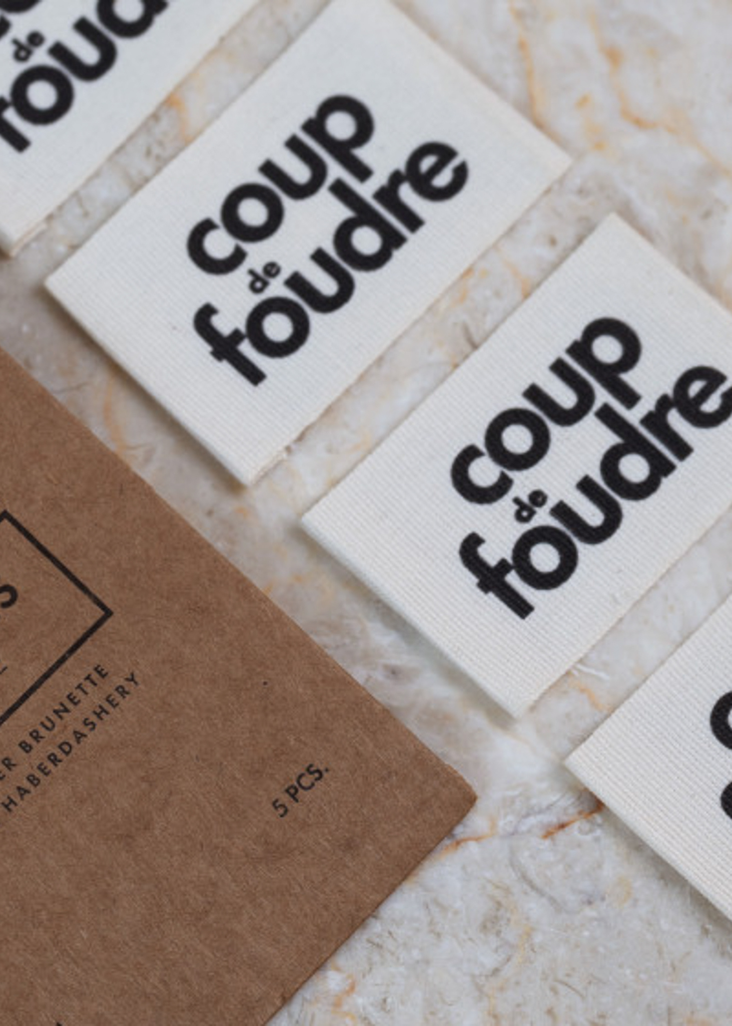 5 geweven kledinglabels om in te naaien, met quote "Coup de foudre" - Atelier Brunette