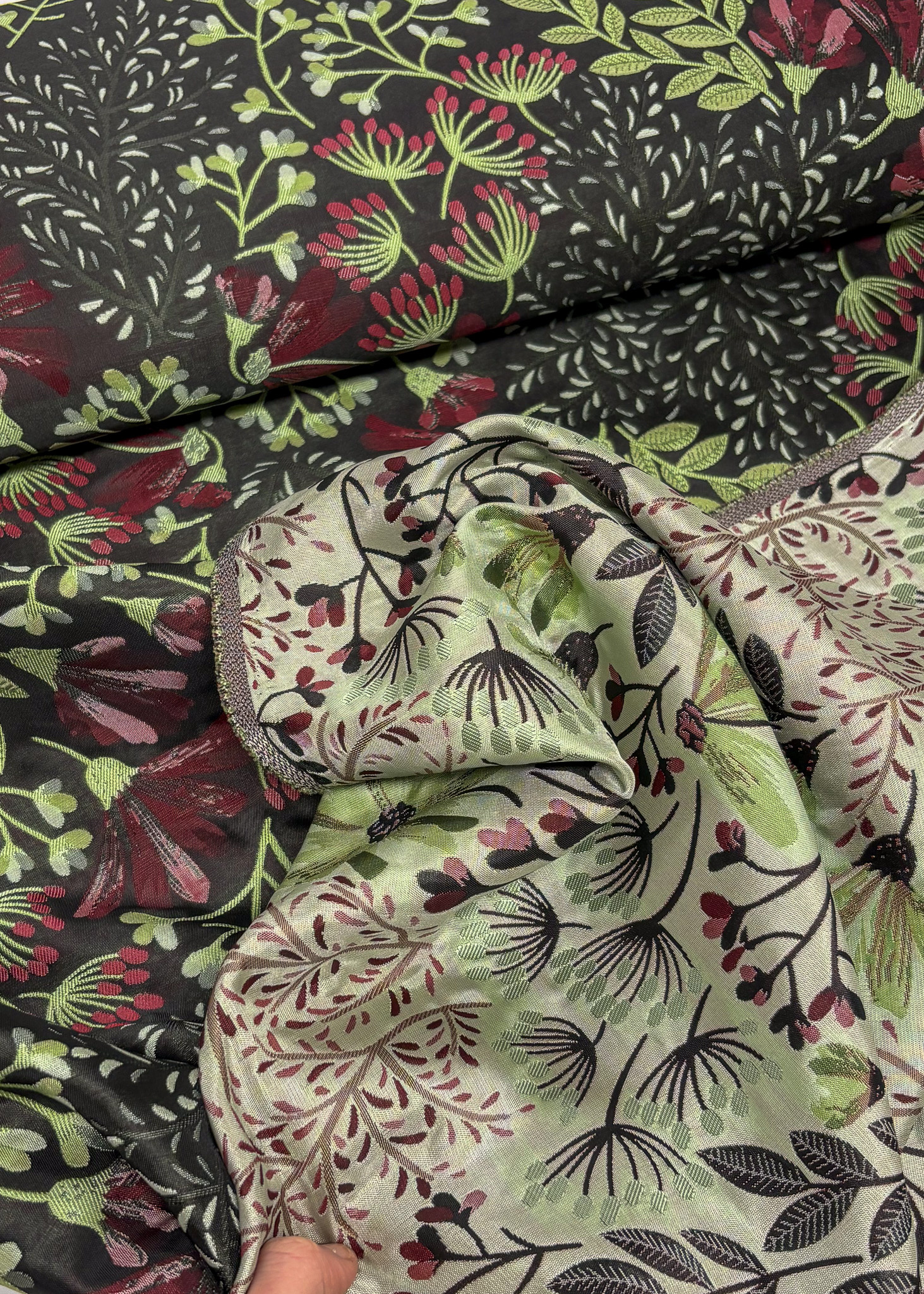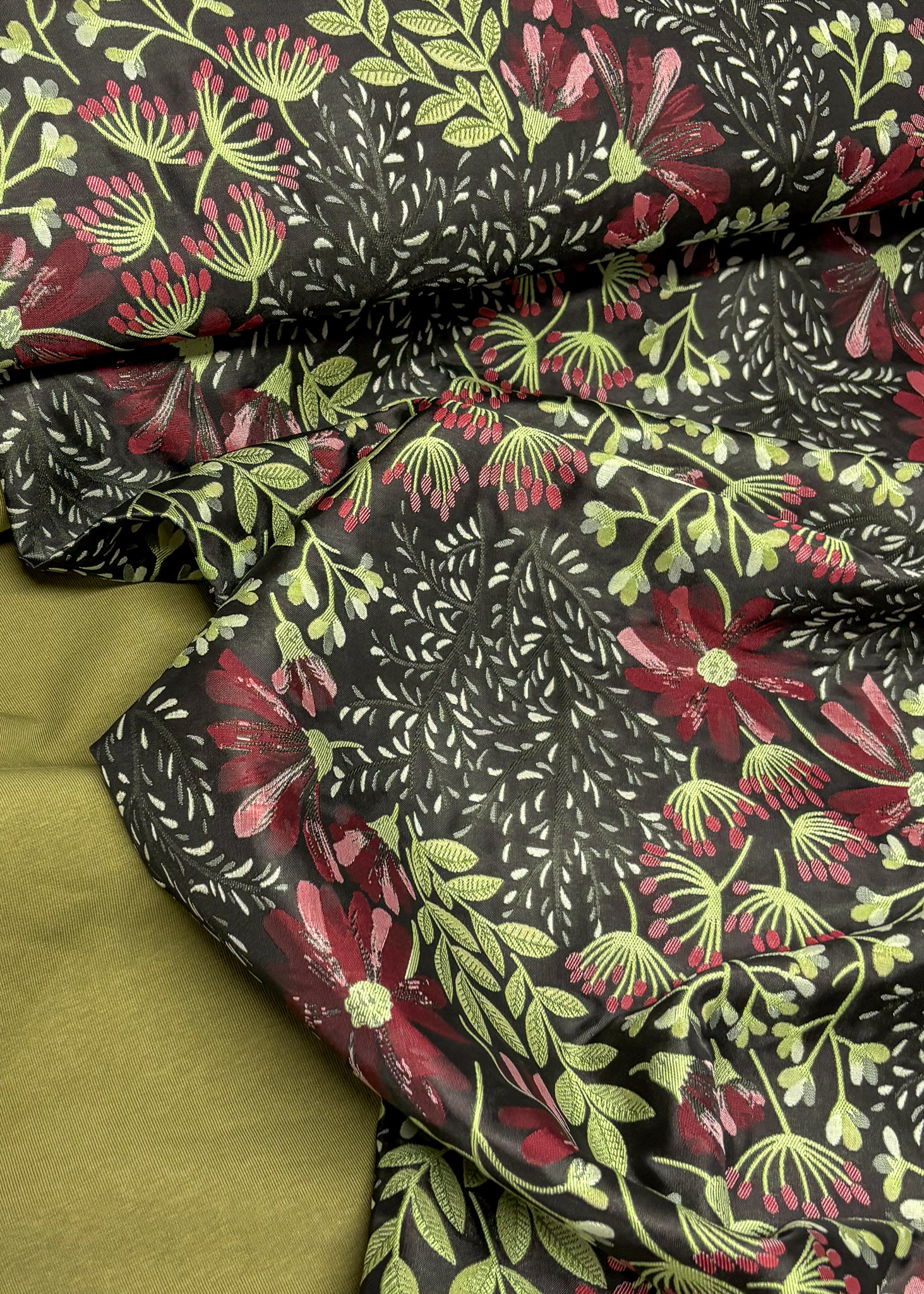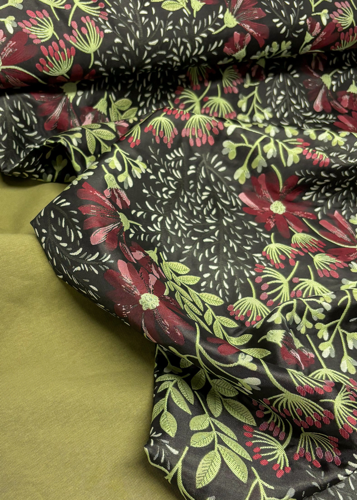 Een mooie, soepele geweven jacquard met dandelions pluisbloemen. Ideaal voor mantels, rechte rokken, ... Maar ook voor kussens en tassen. Ook heel tof als accent op de mouw van de Laure sweater.