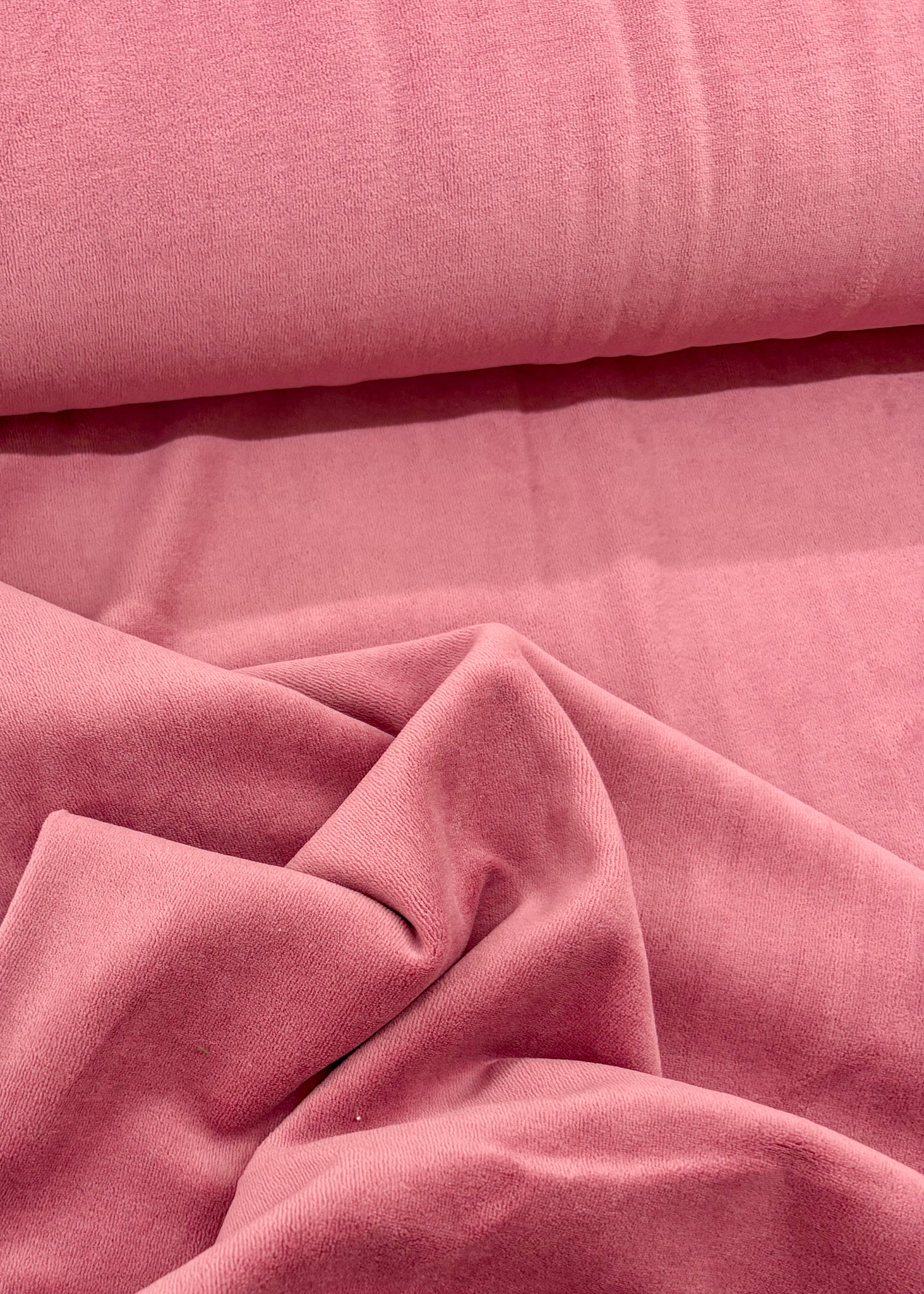 Een zeer goede kwaliteit nicky velours, een zachte en rekbare stof. Perfect voor pyjama's, truien, jurken en zomerse shortjes.