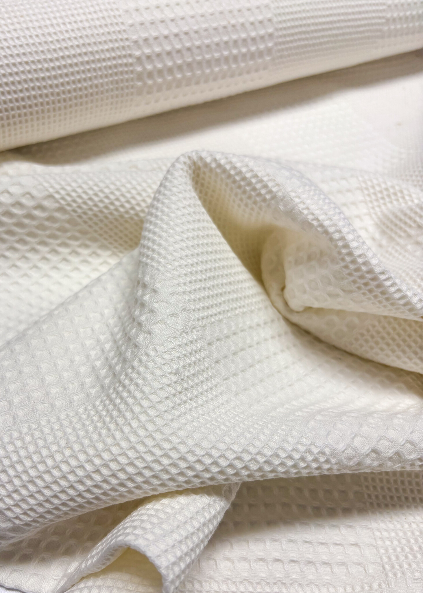 Een zachte wafelkatoen. Perfect voor babyartikelen. OEKO-tex.