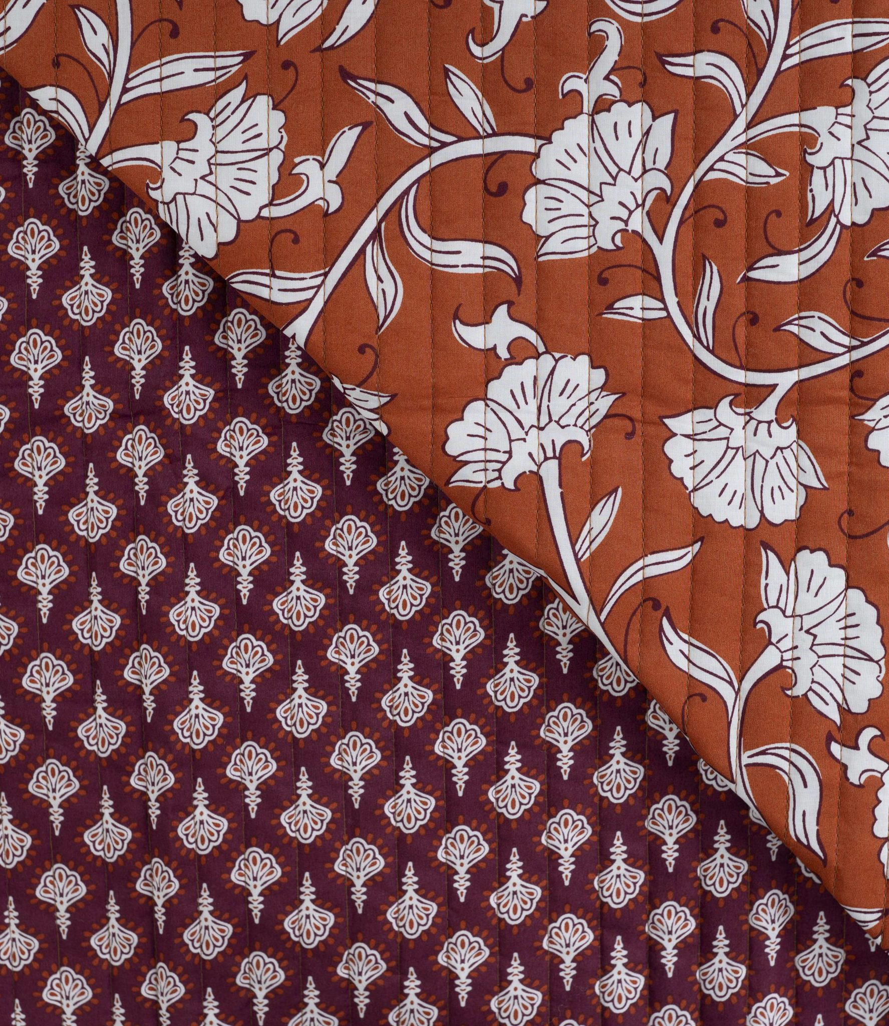 ethnic flowers cognac - gewatteerde katoen - double face stepper