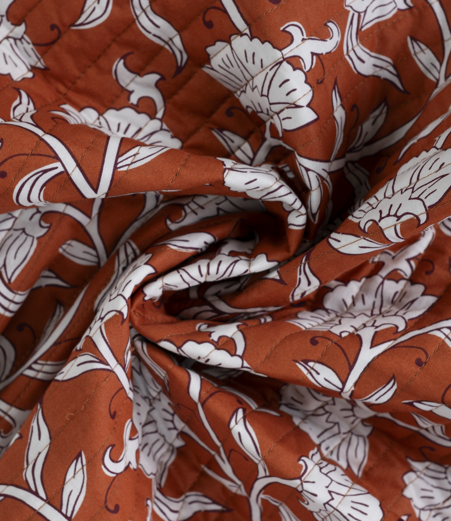 ethnic flowers cognac - gewatteerde katoen - double face stepper - Madeline de stoffenmadam - Stoffenwinkel Lier ( Antwerpen )