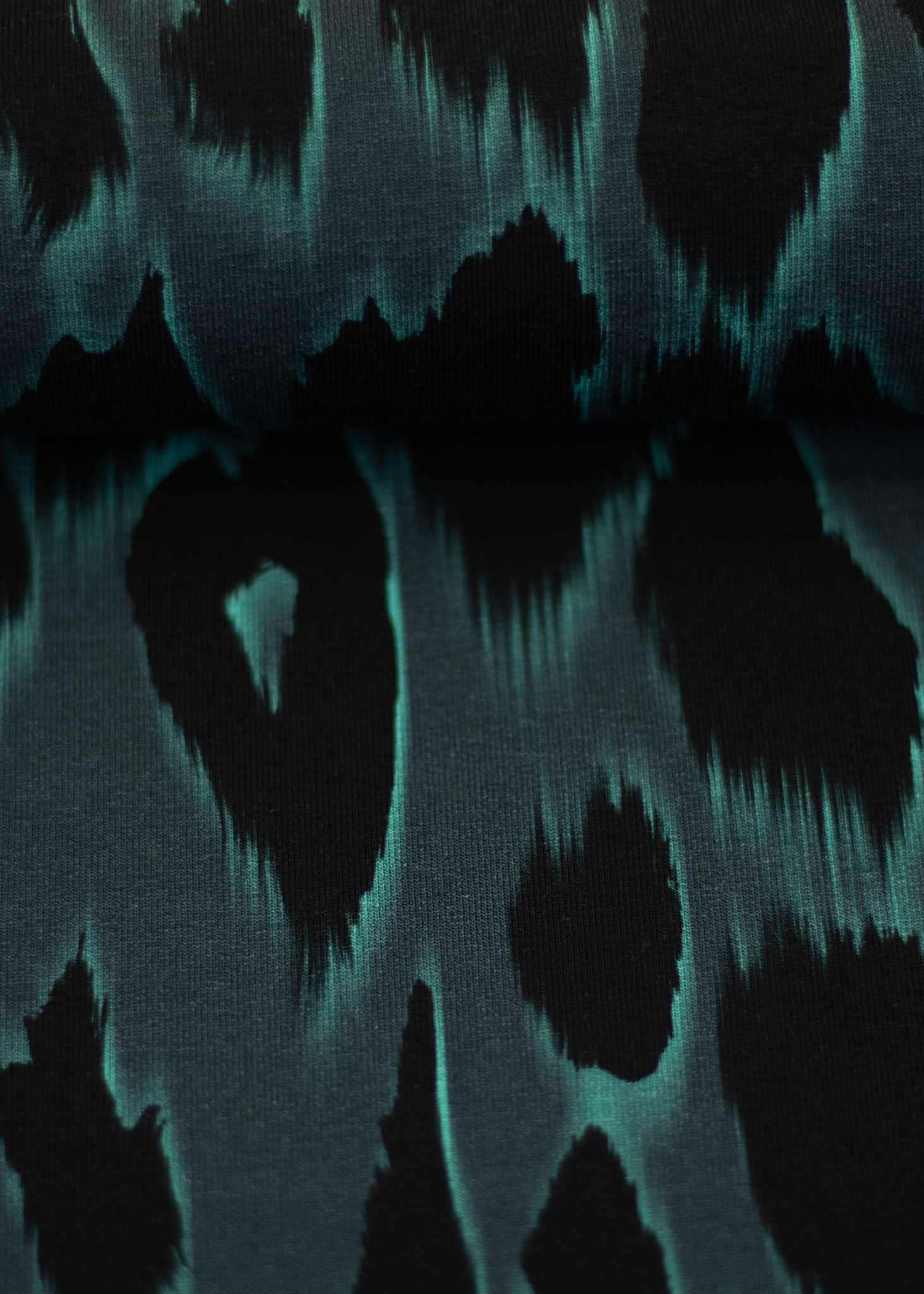 Mooie, kwalitatieve french terry sweater stof, "Floating Leo" by Thorsten Berger. Gelust achteraan. OEKO-TEX. Swafing stoffe met toffe print.
