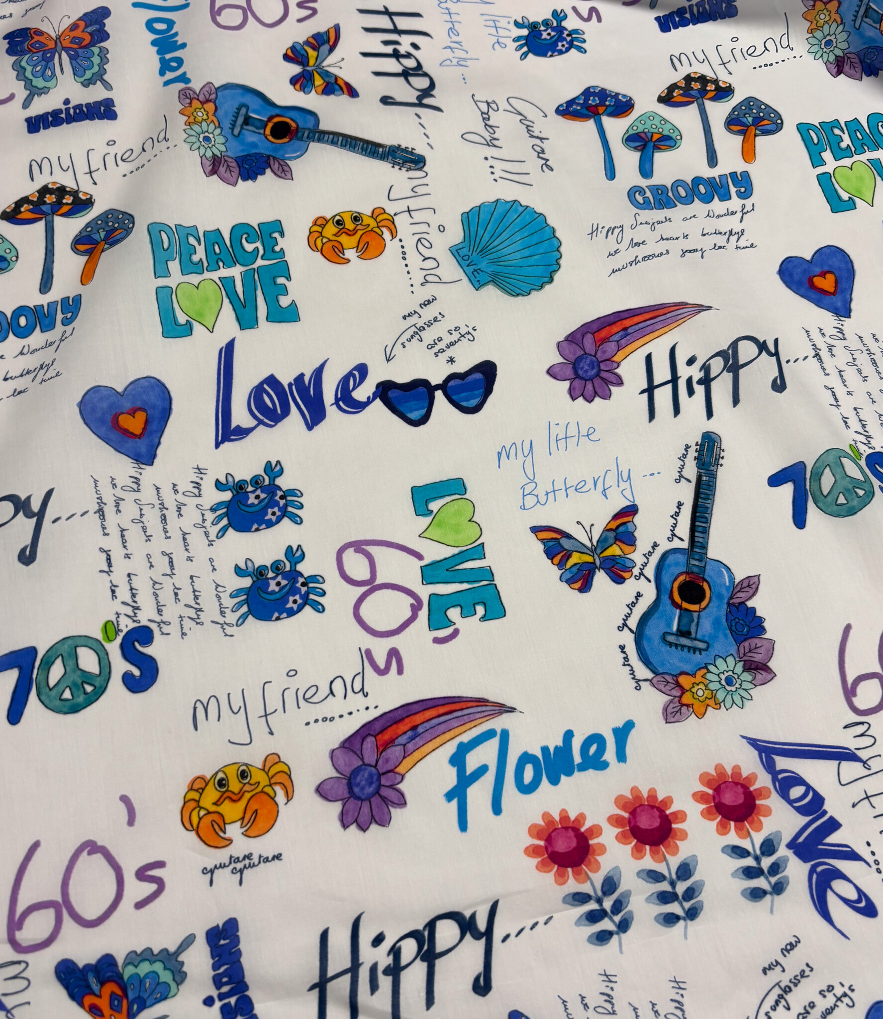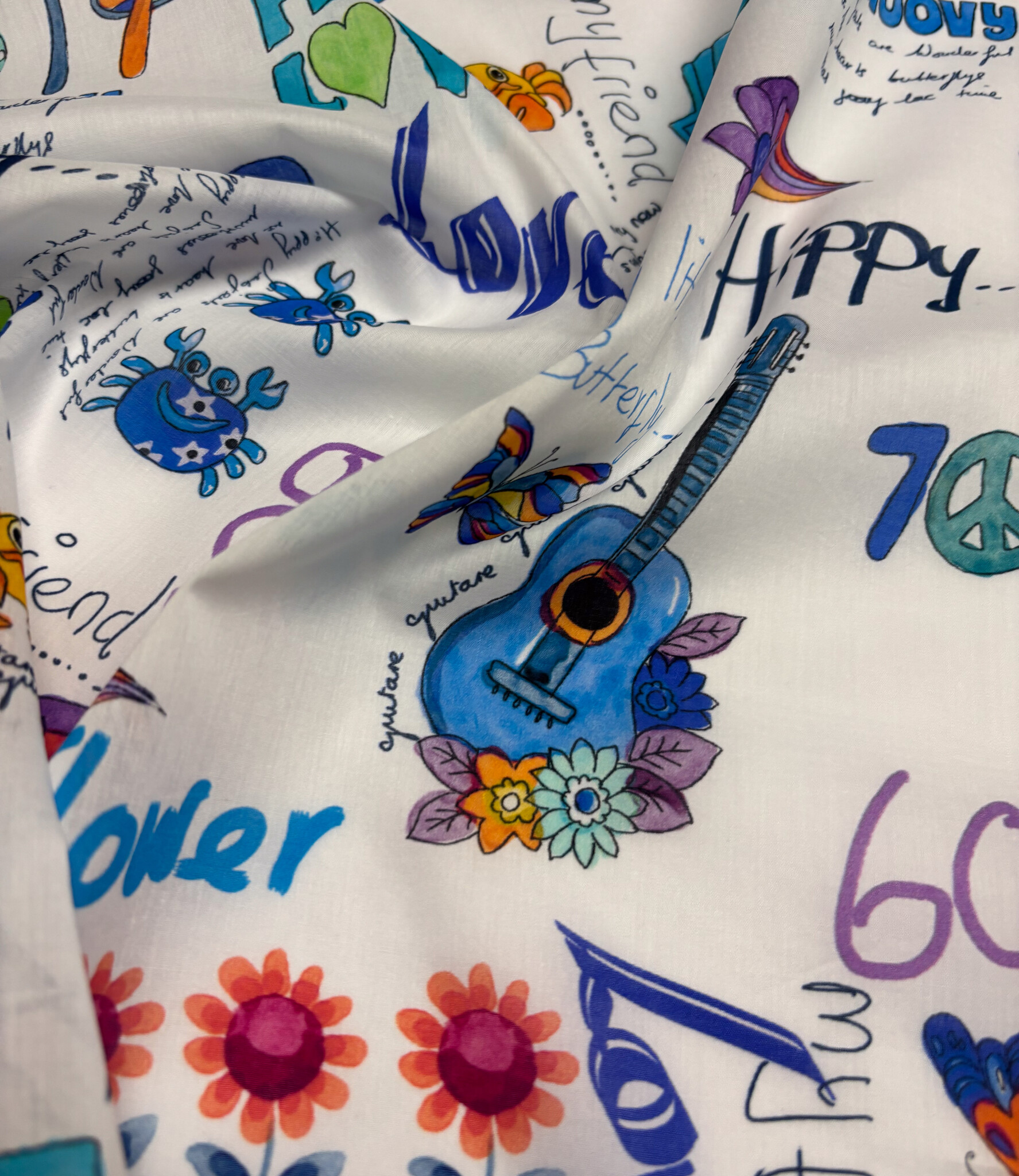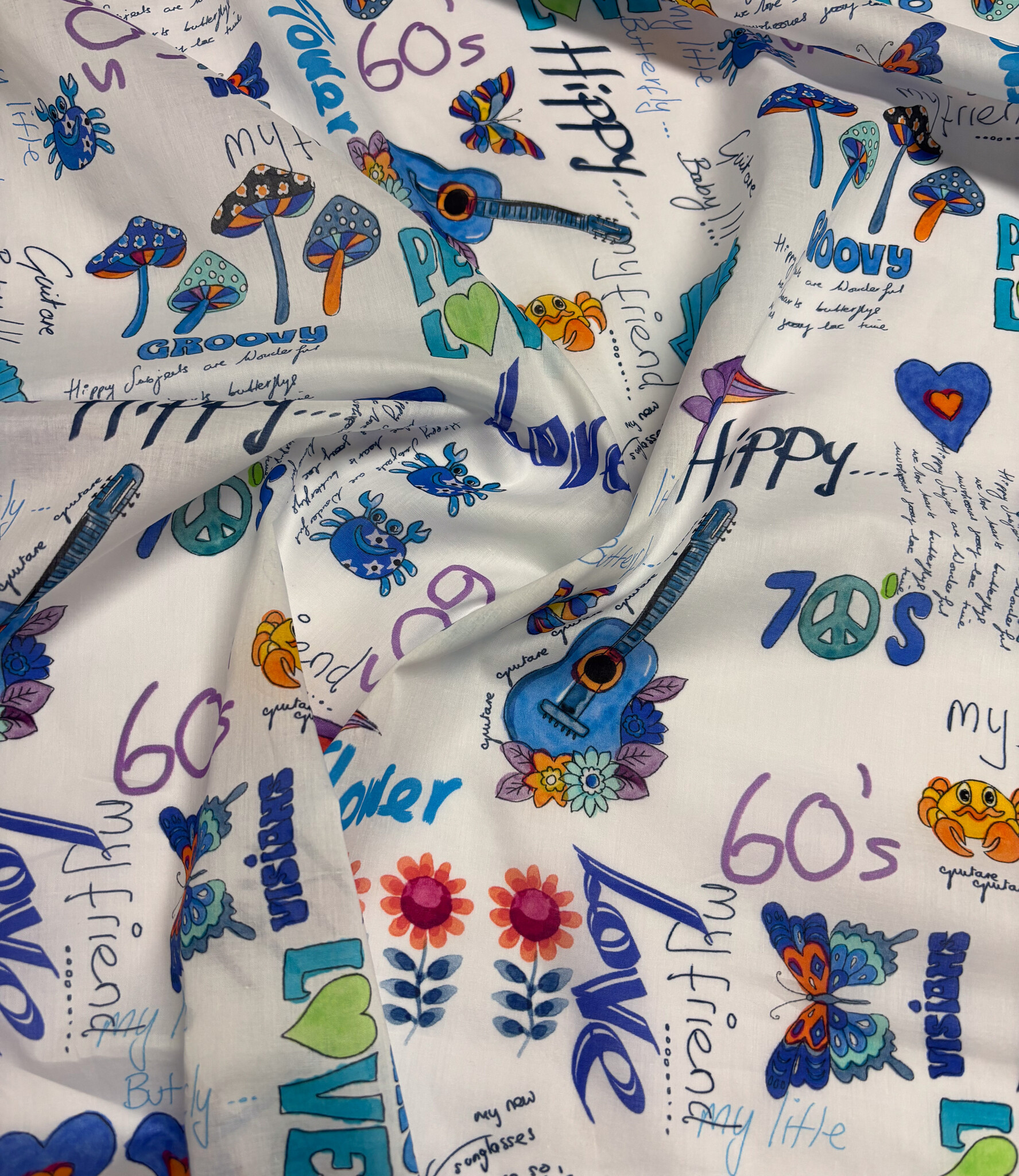 Een prachtige katoen met flower power print. A la Ville stoffen.