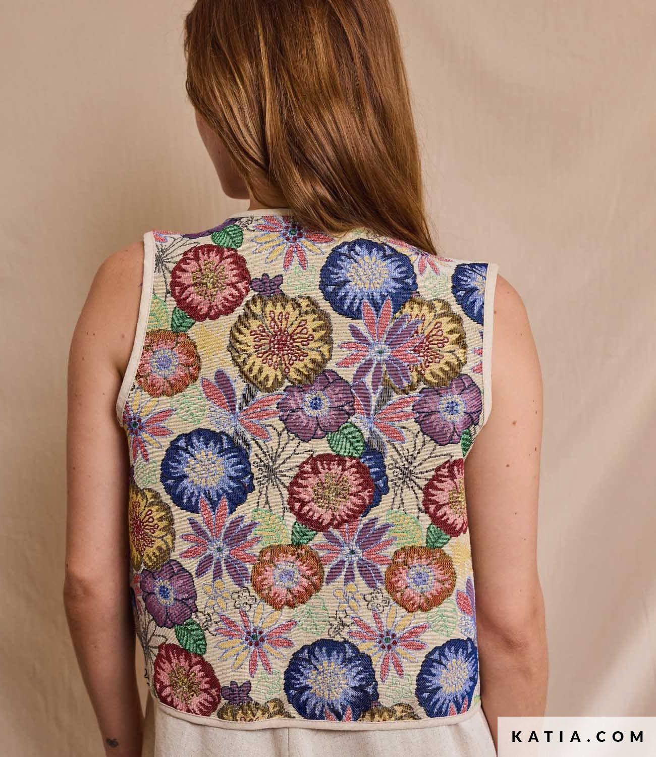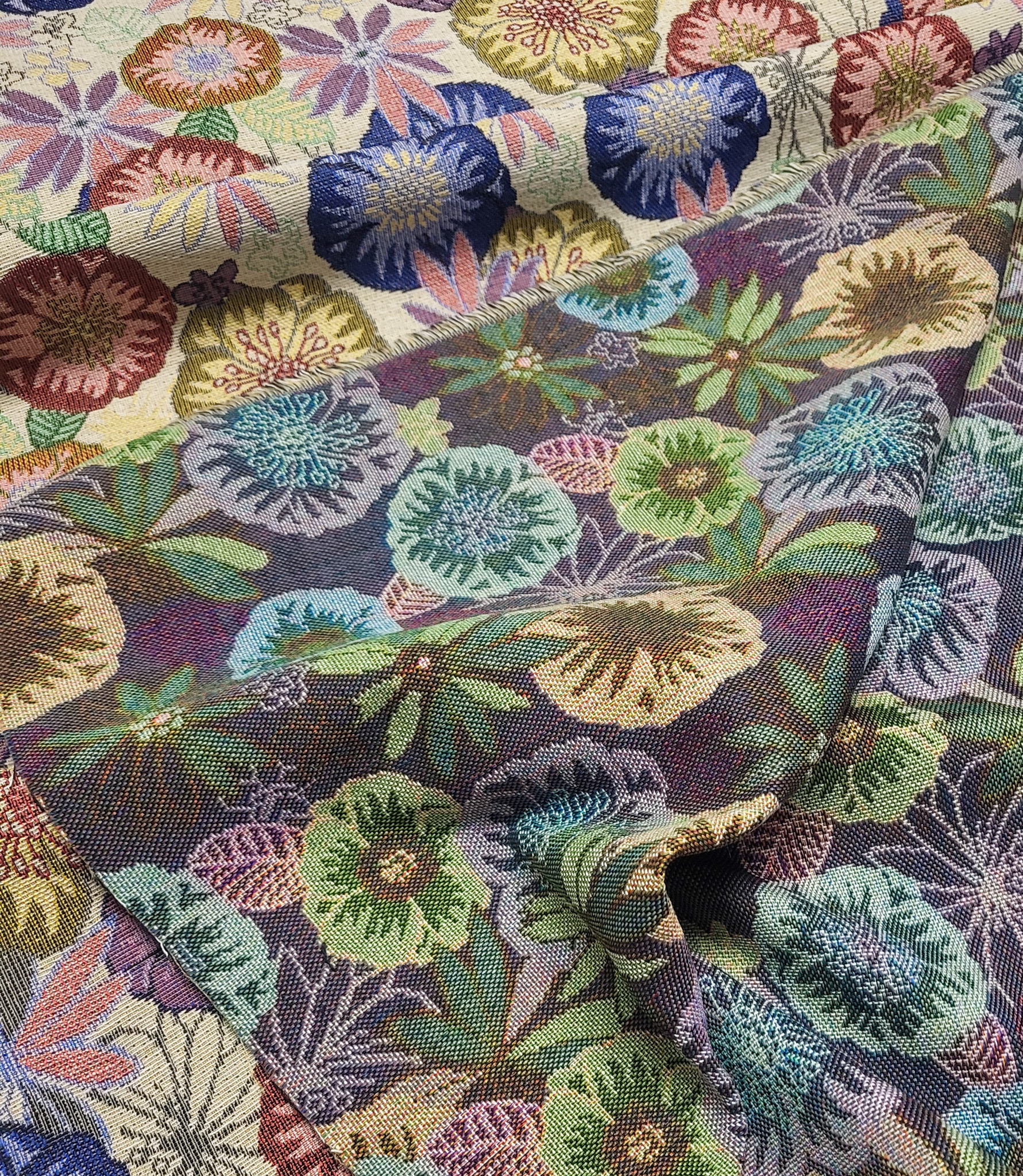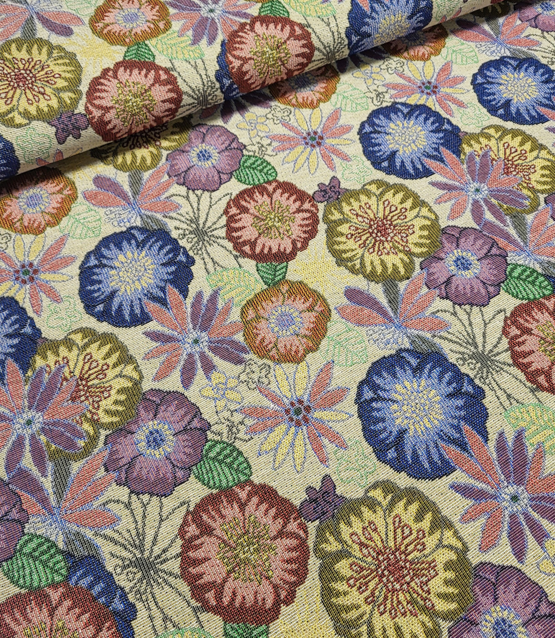 Een prachtige jacquard met bloemen. Katia Fabrics.