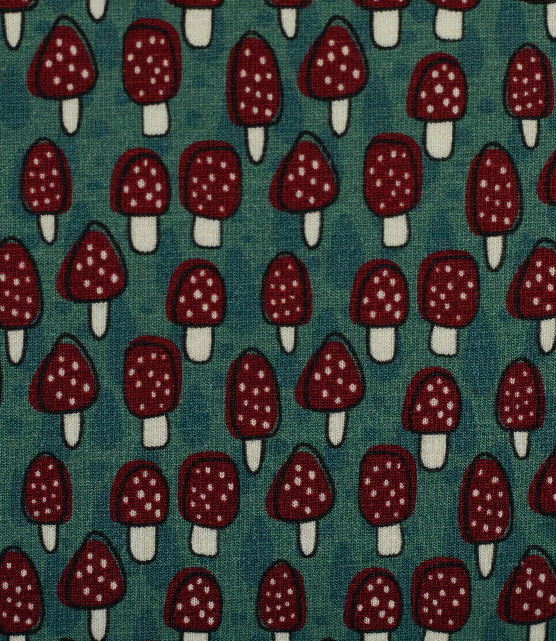 Een zachte tricot met paddenstoelen. Swafing Stoffe. OEKO-tex gecertificeerd.