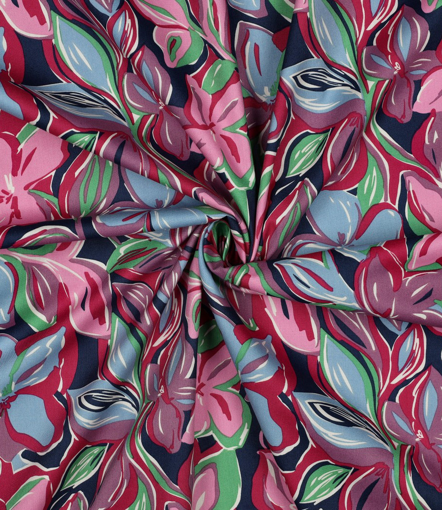 fuchsia bloemen - katoen viscose - Madeline de stoffenmadam - Stoffenwinkel Lier ( Antwerpen )