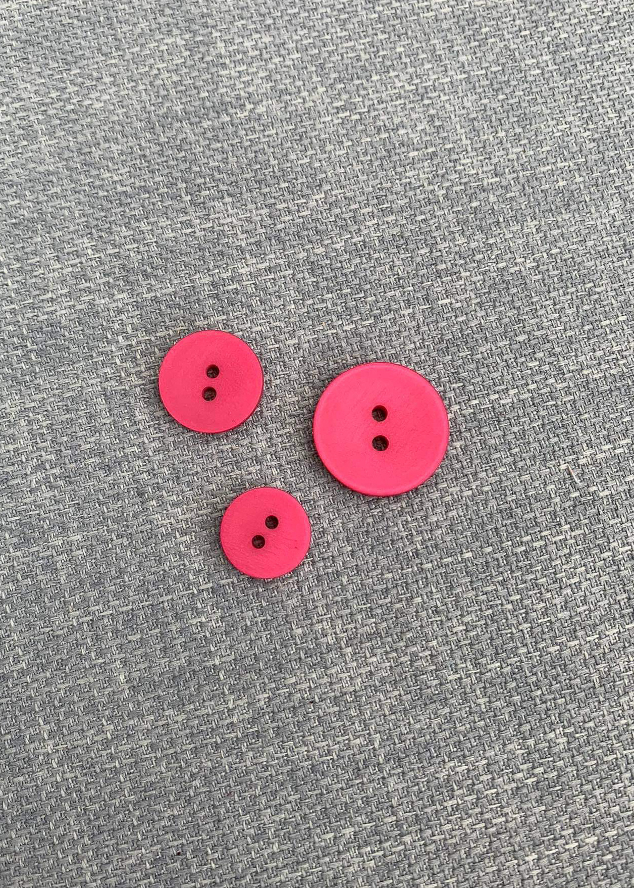 Een knoop met twee gaatjes in verschillende kleuren en maten.