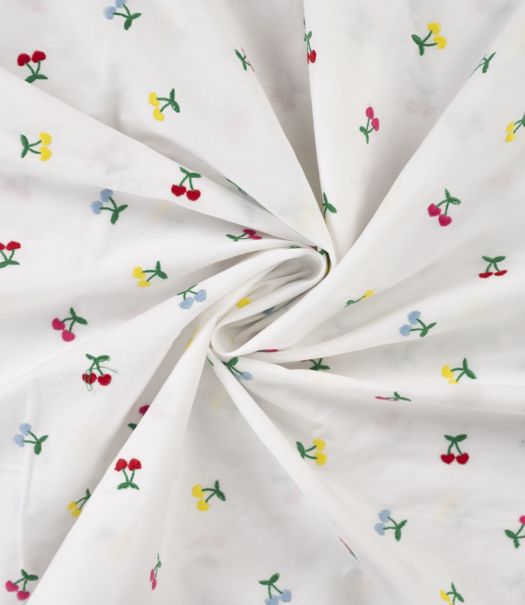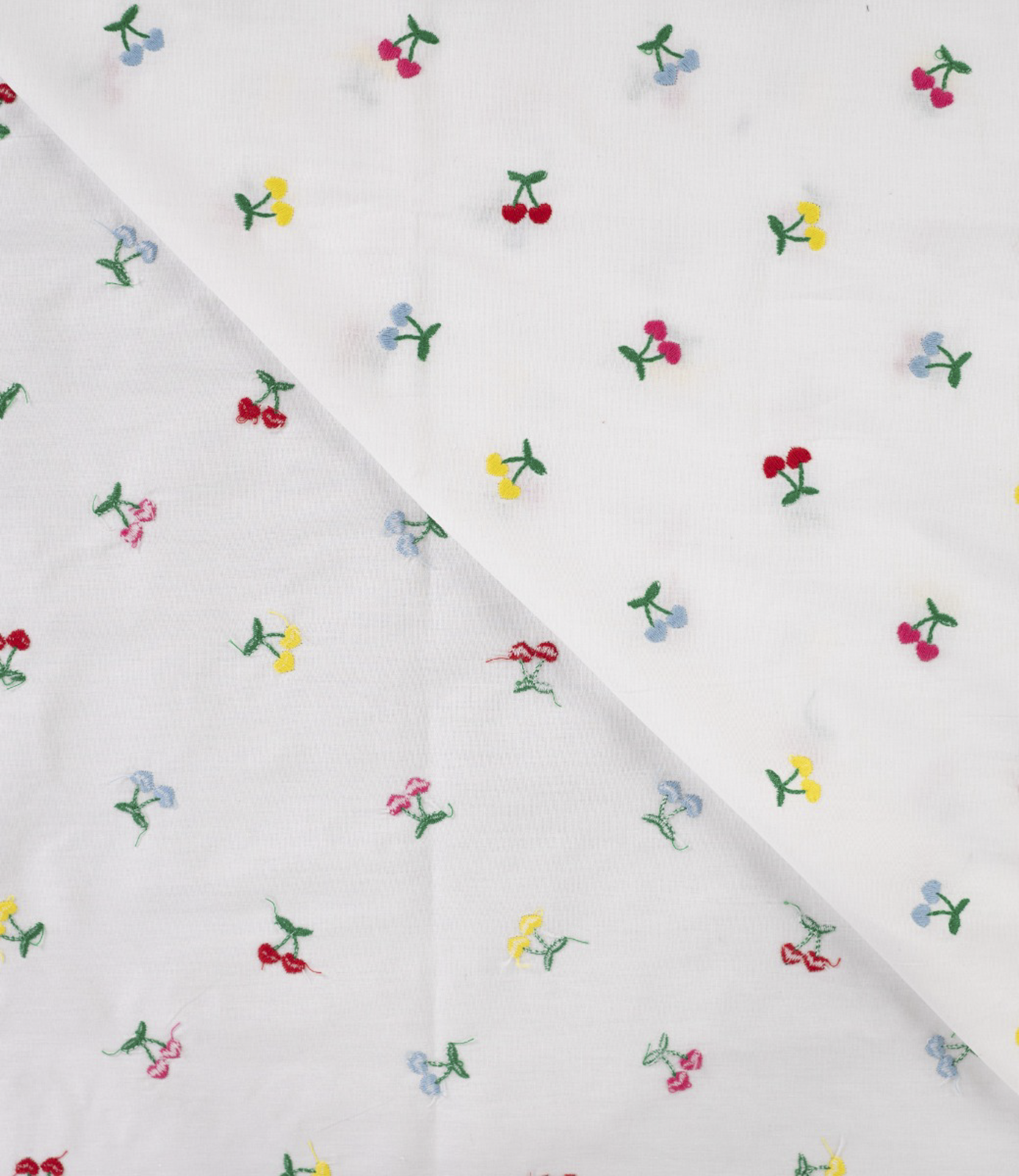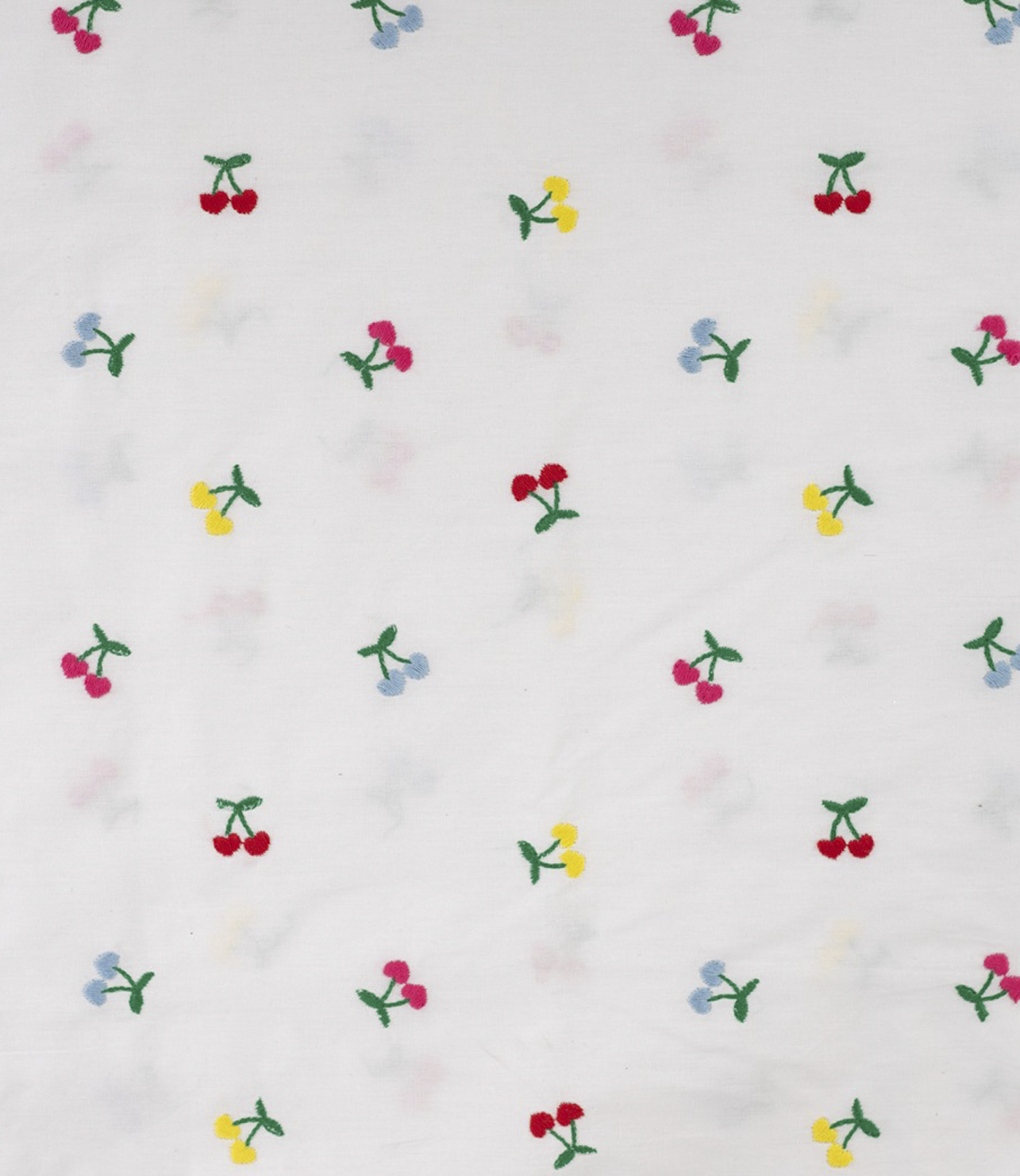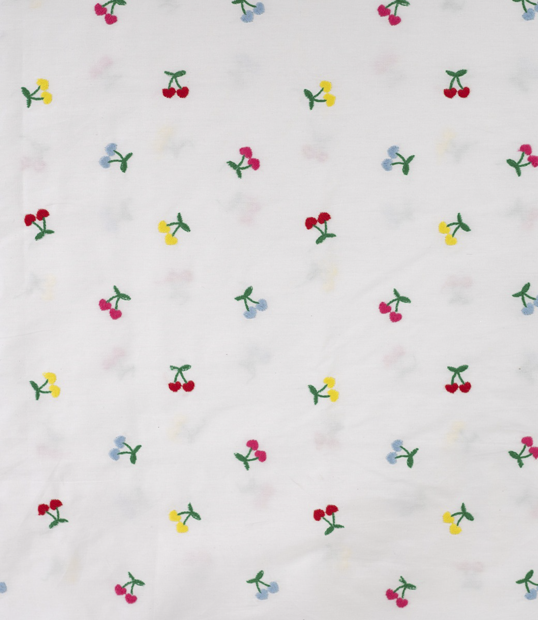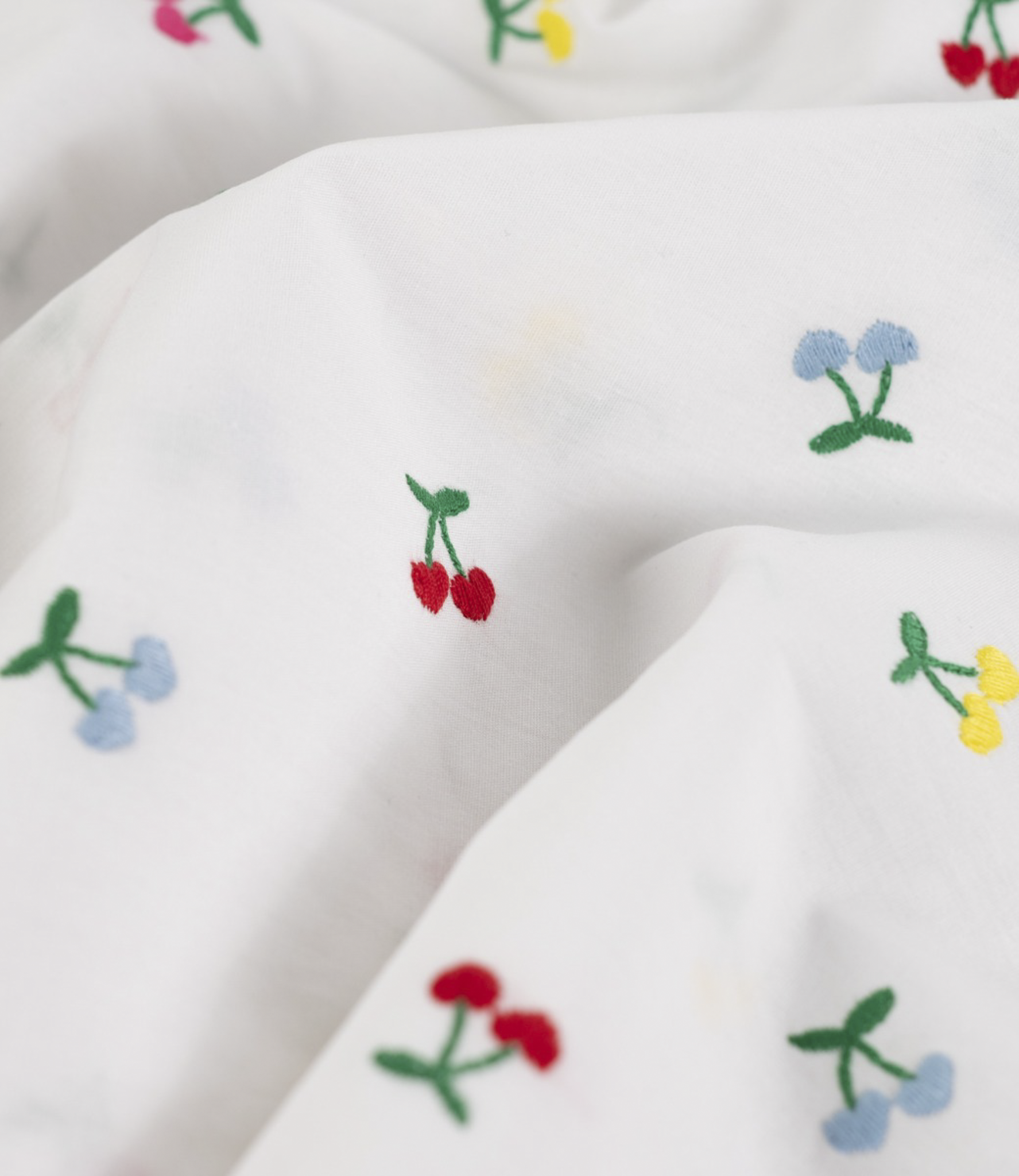 Een prachtige soepele katoen met geborduurde kersen.