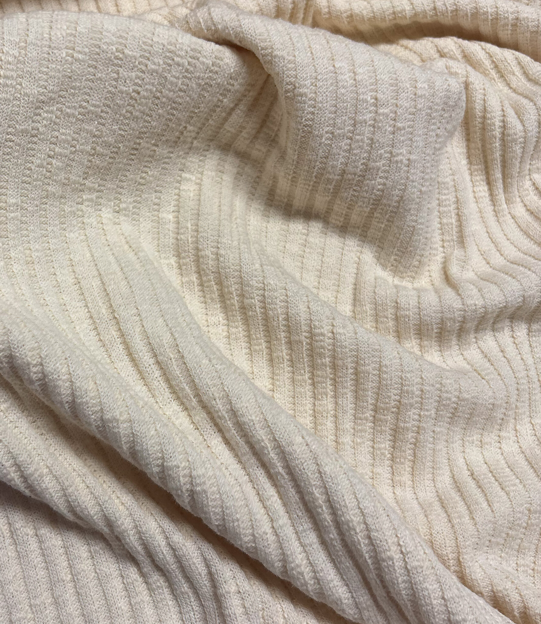 gebroken wit - katoen gebreid met ribbel - prachtige vormvaste stof - Madeline de stoffenmadam - Stoffenwinkel Lier ( Antwerpen )
