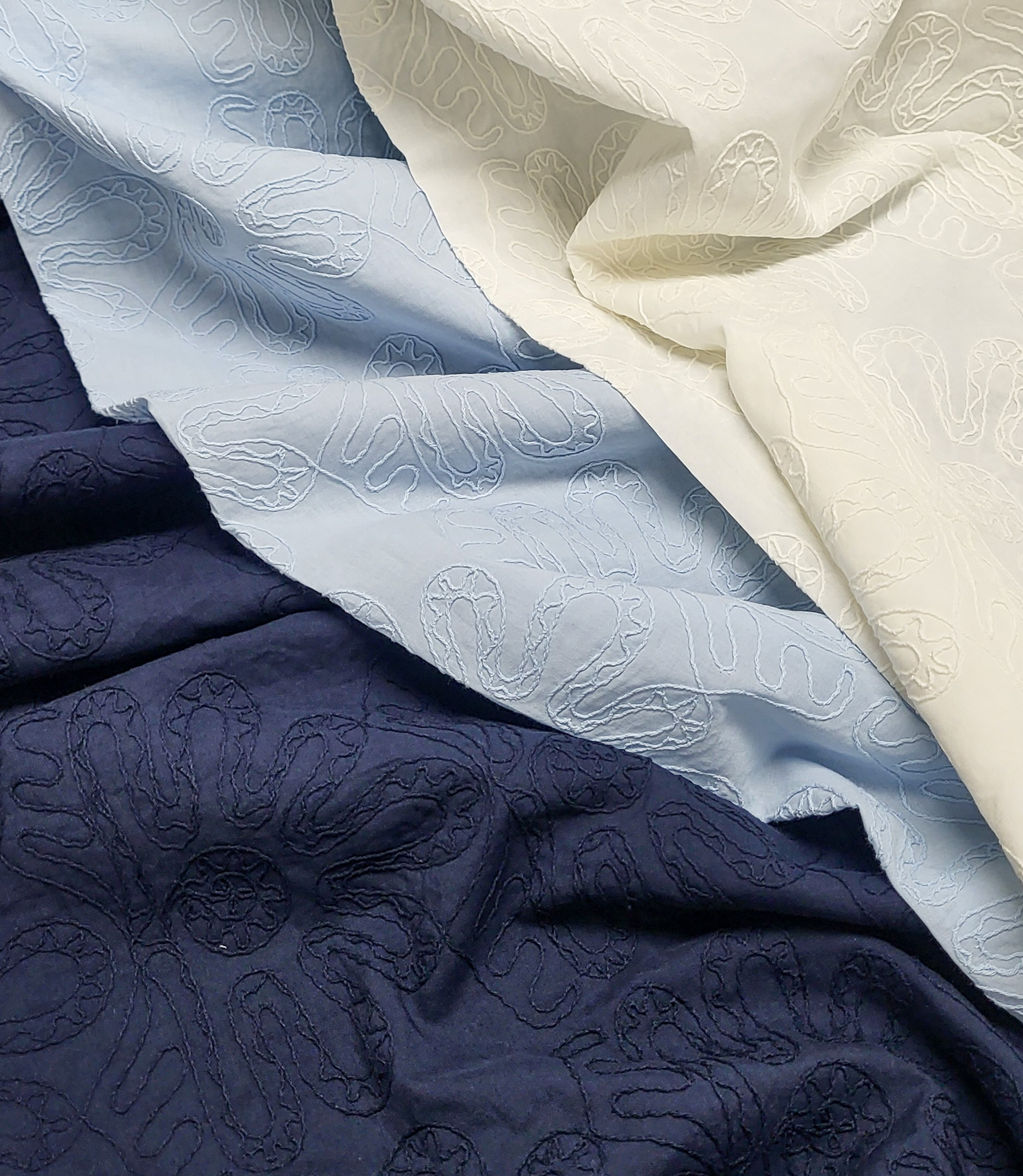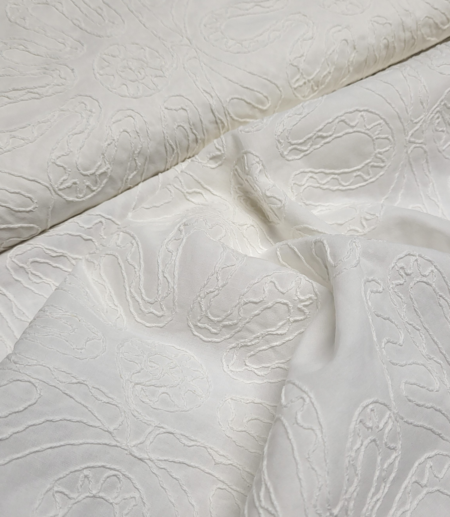 gebroken wit - ton sur ton - embroidery katoen - Madeline de stoffenmadam - Stoffenwinkel Lier ( Antwerpen )