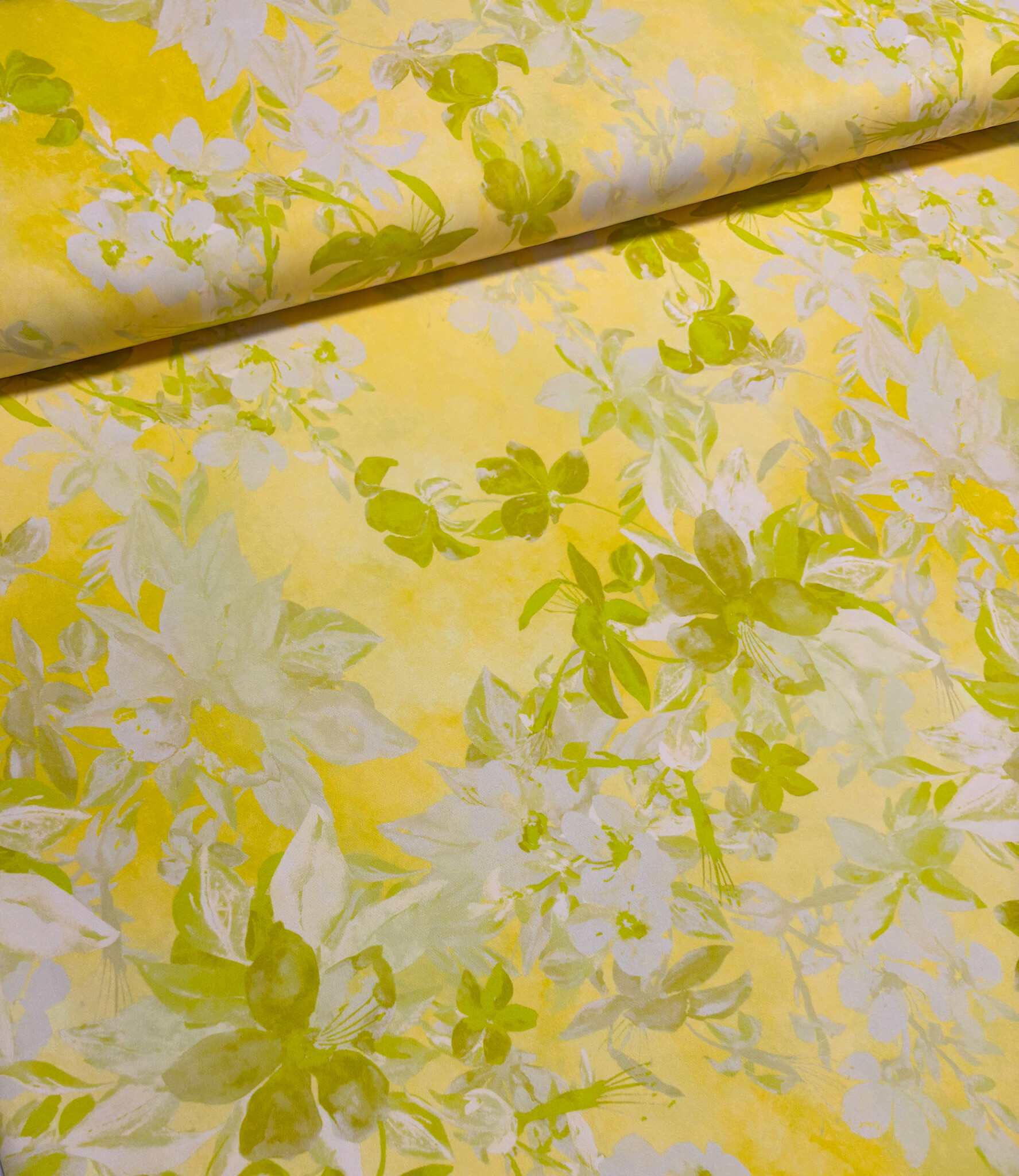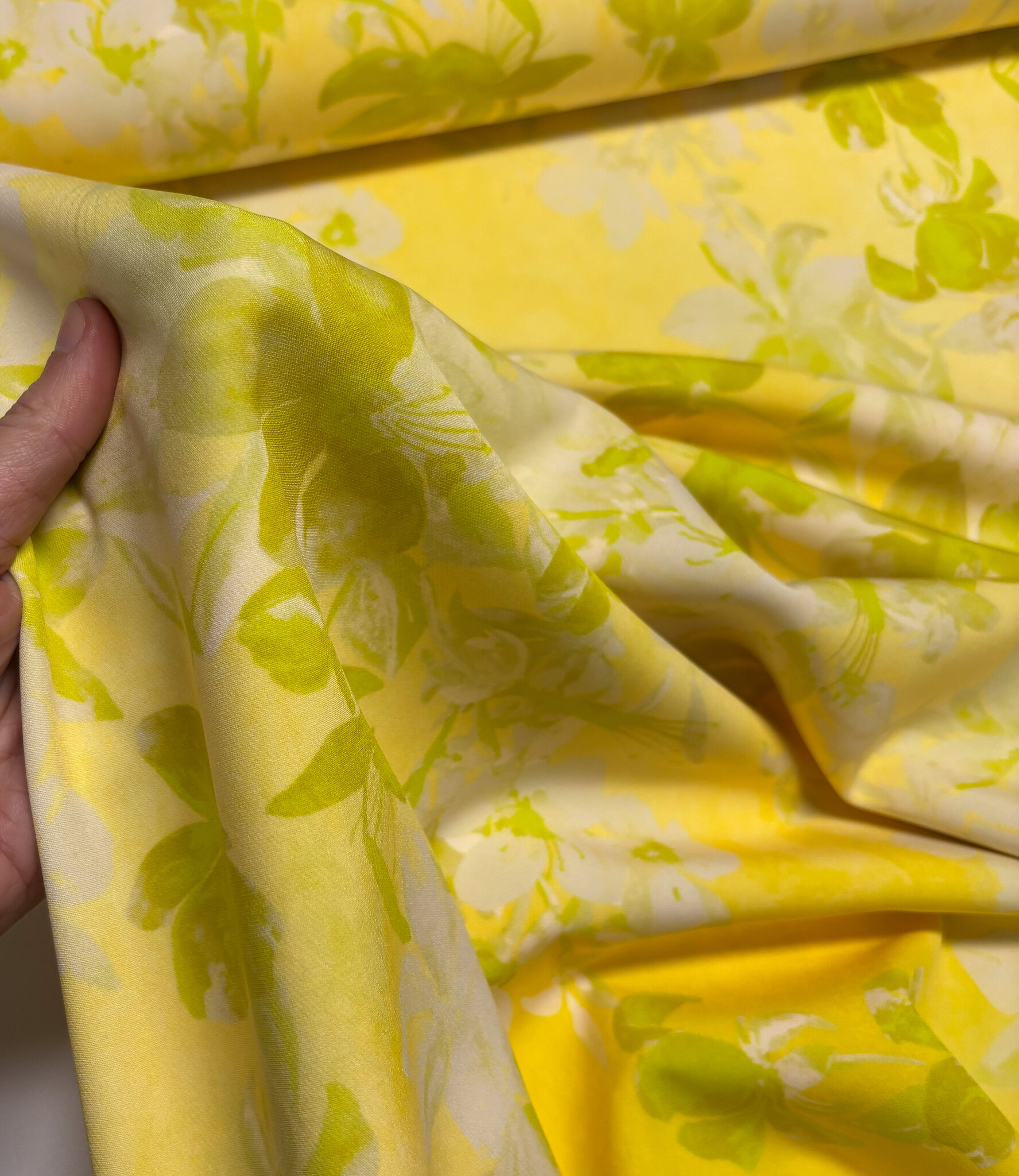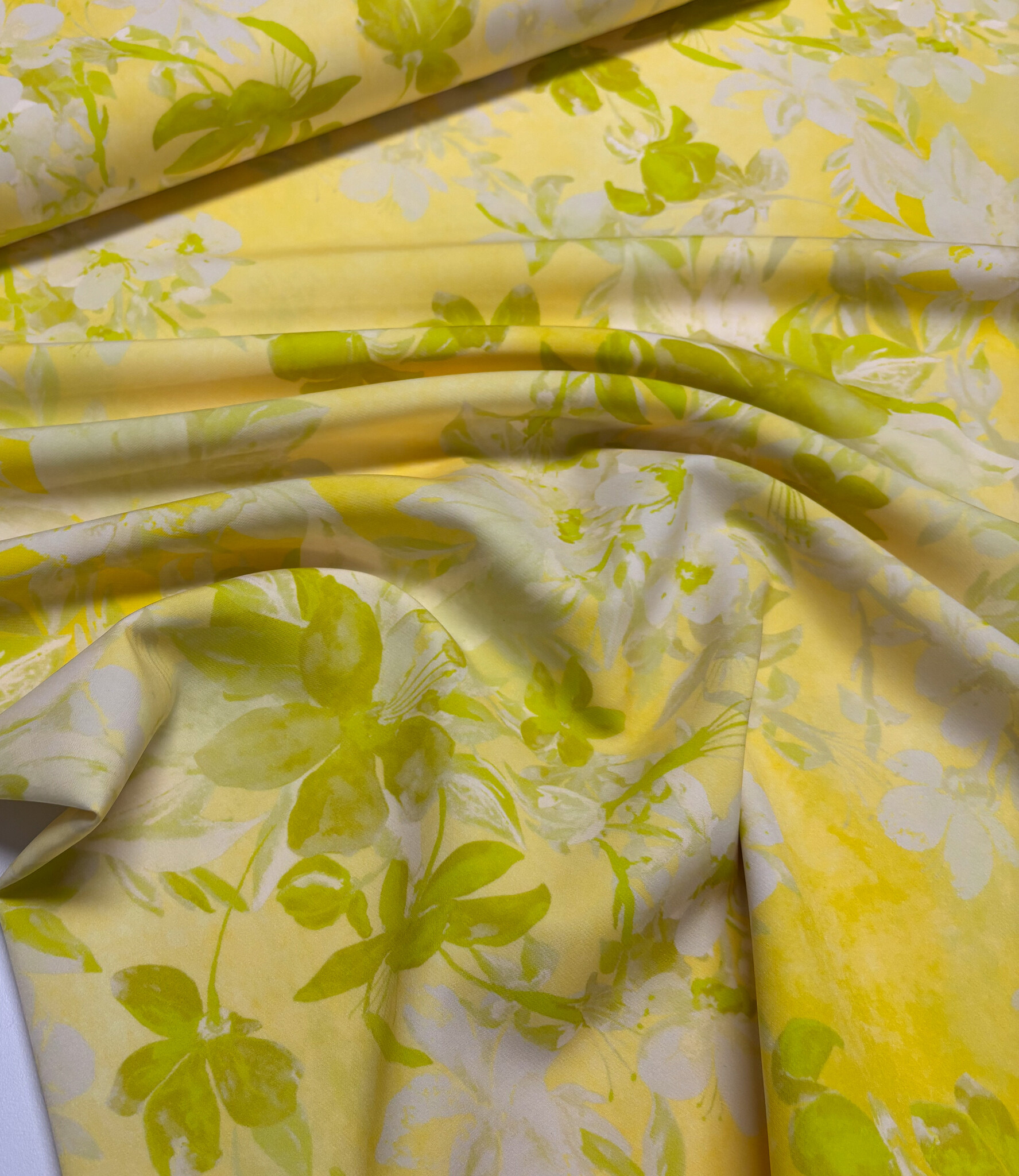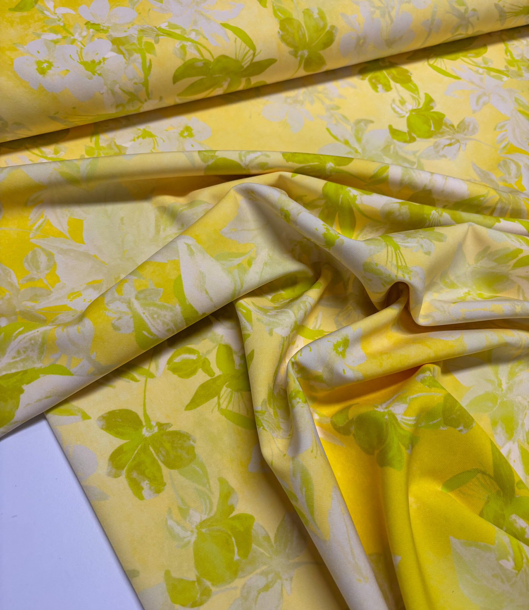 geel / limoen print - stijlvolle geweven stof- kreukvrij - hoogstaande kwaliteit (Italie) - Madeline de stoffenmadam - Stoffenwinkel Lier ( Antwerpen )