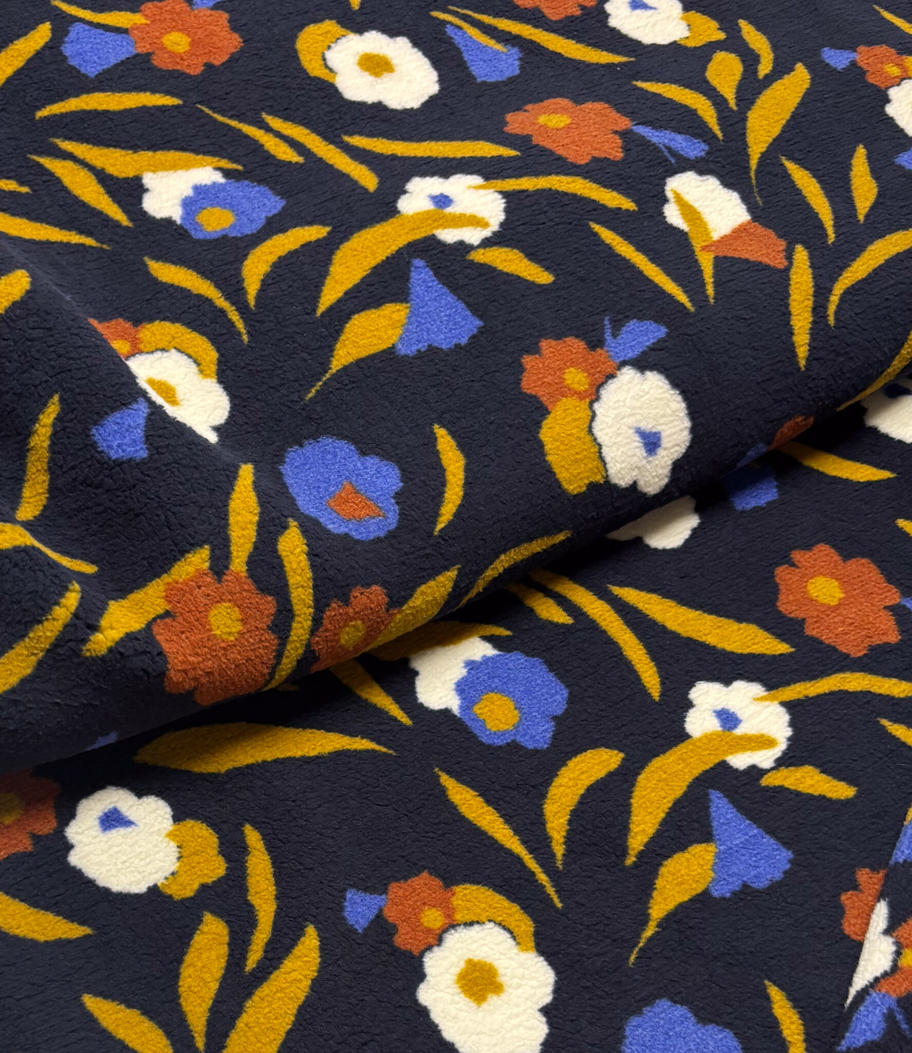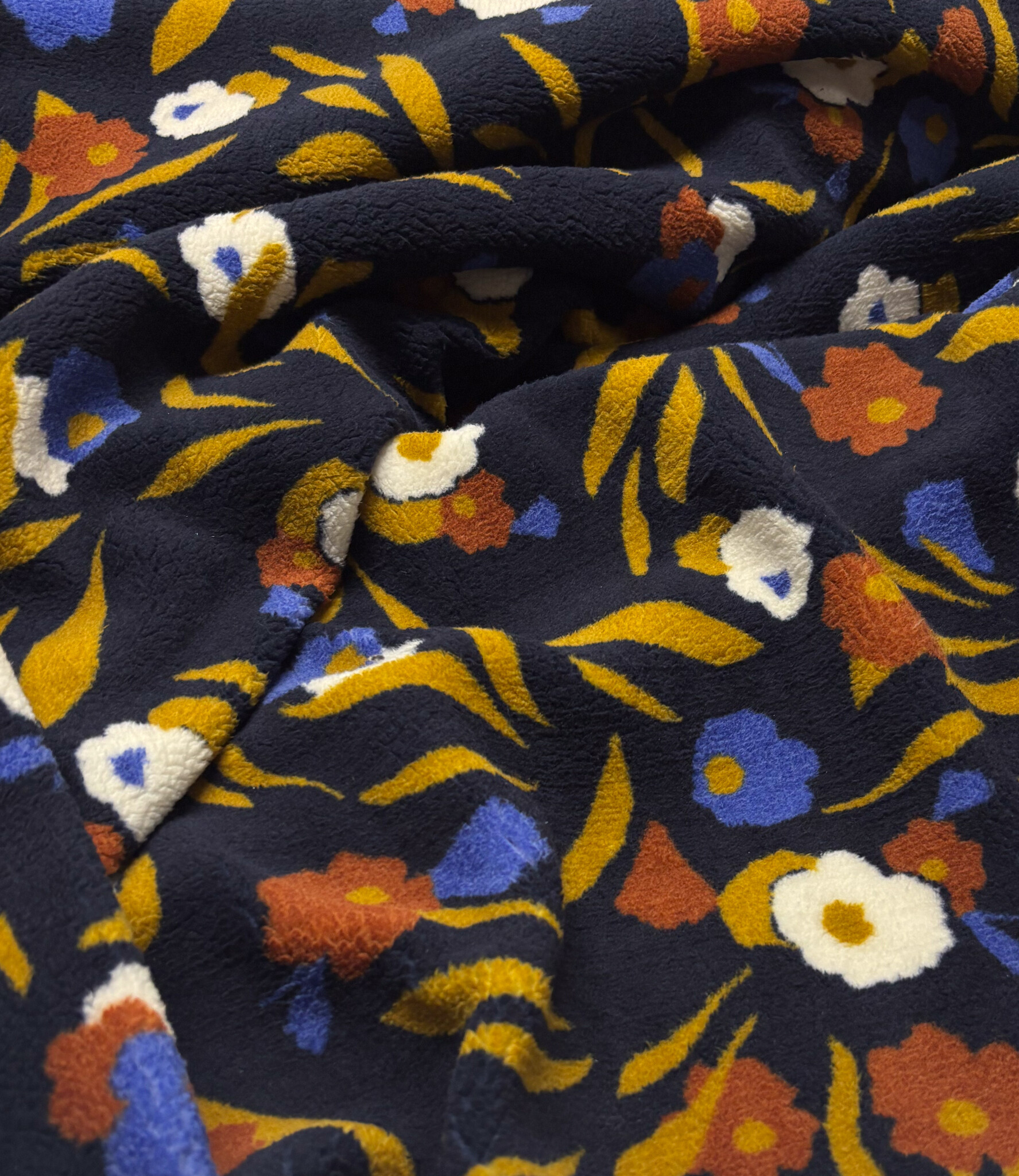 Een zachte teddy stof met bloemen. Perfect voor mantel, maar ook voor warme truien.