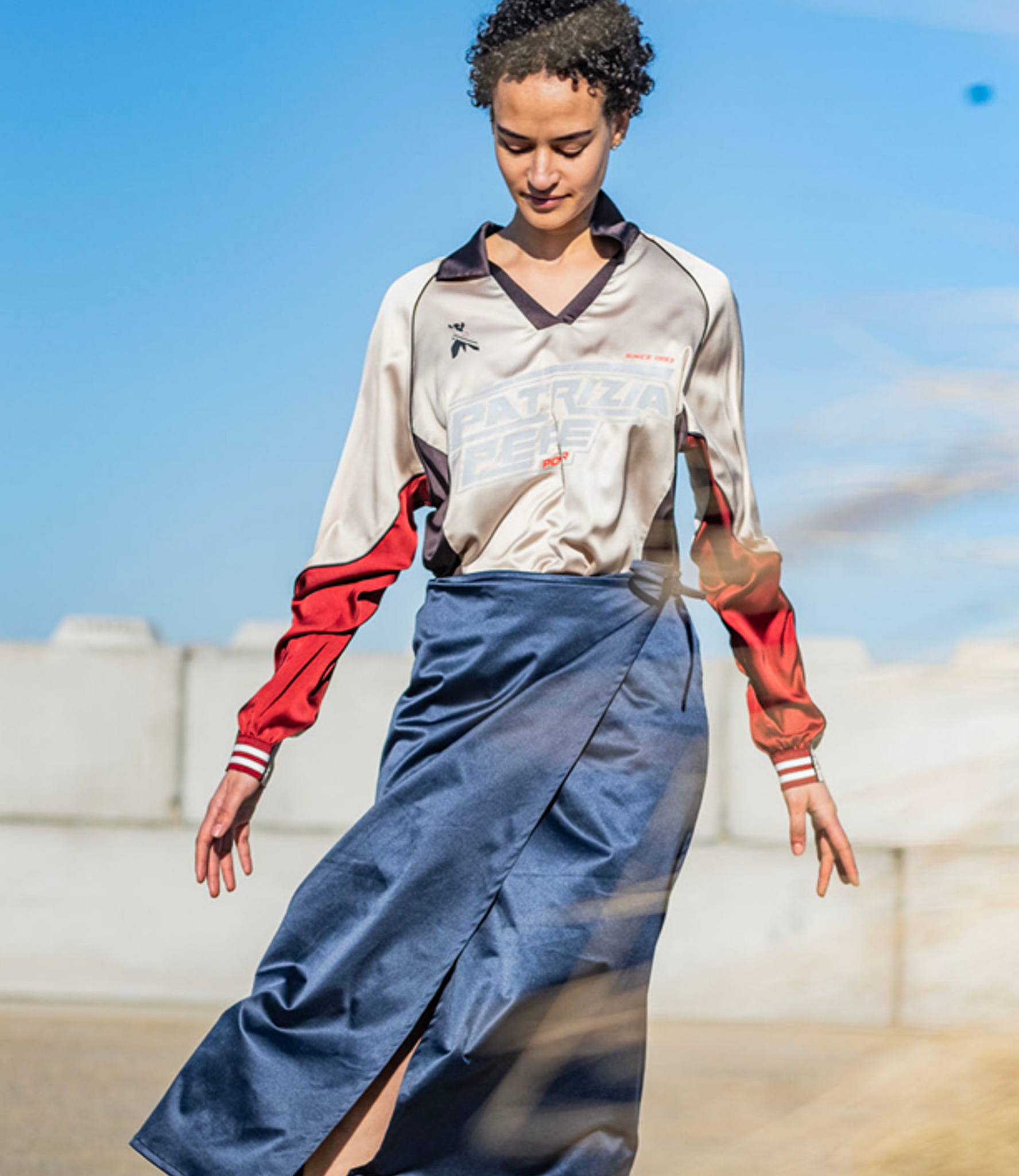 Mooie stevige stretch katoen, prachtig gesatineerd uit de collectie van Fibre Mood. Ideaal voor kleedjes, broeken of blazers.