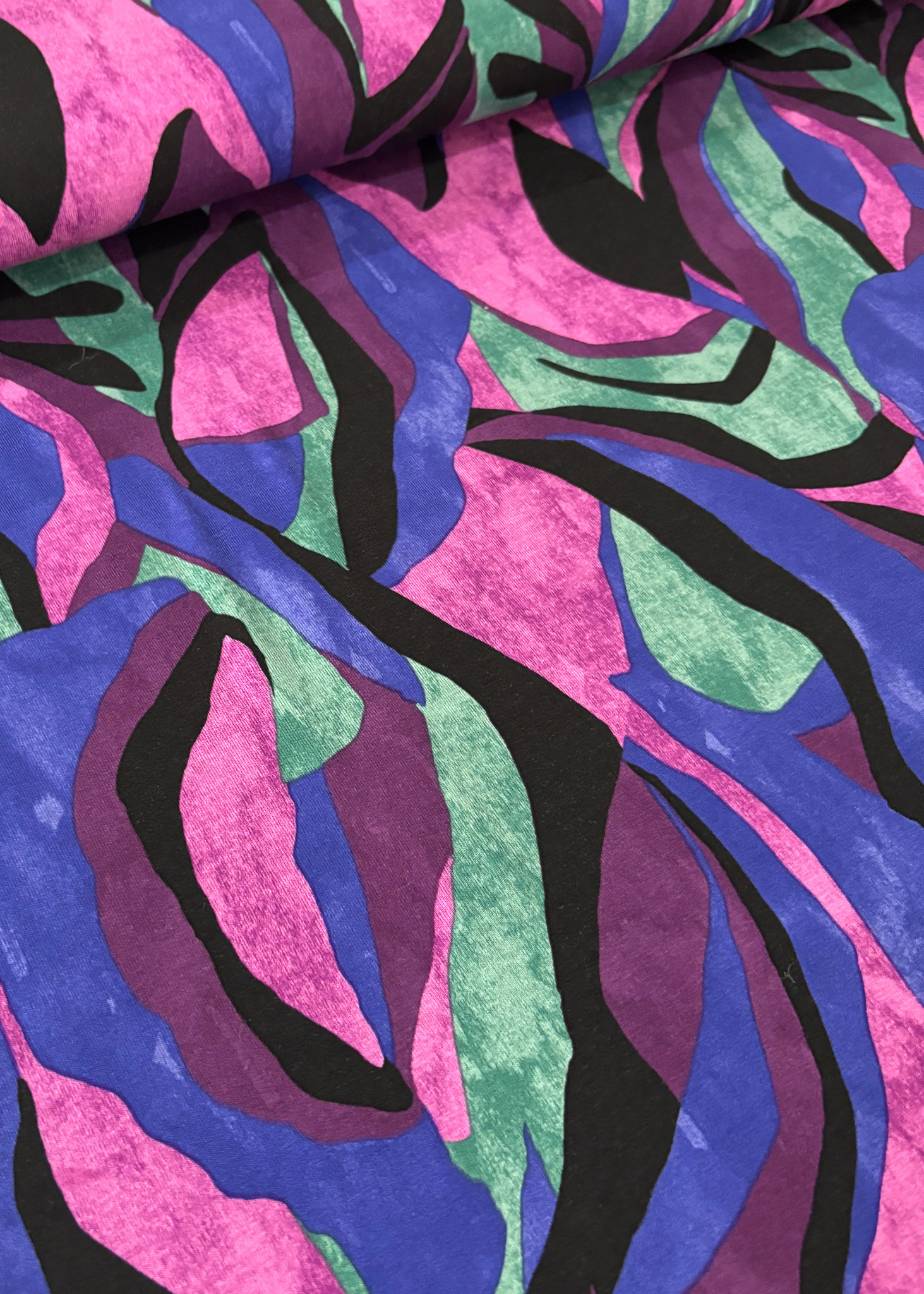 Een fijn viscose tricot met blaadjes. Zachte en soepelvallende stof, zeer geschikt voor T-shirts en sportieve jurken voor dames.