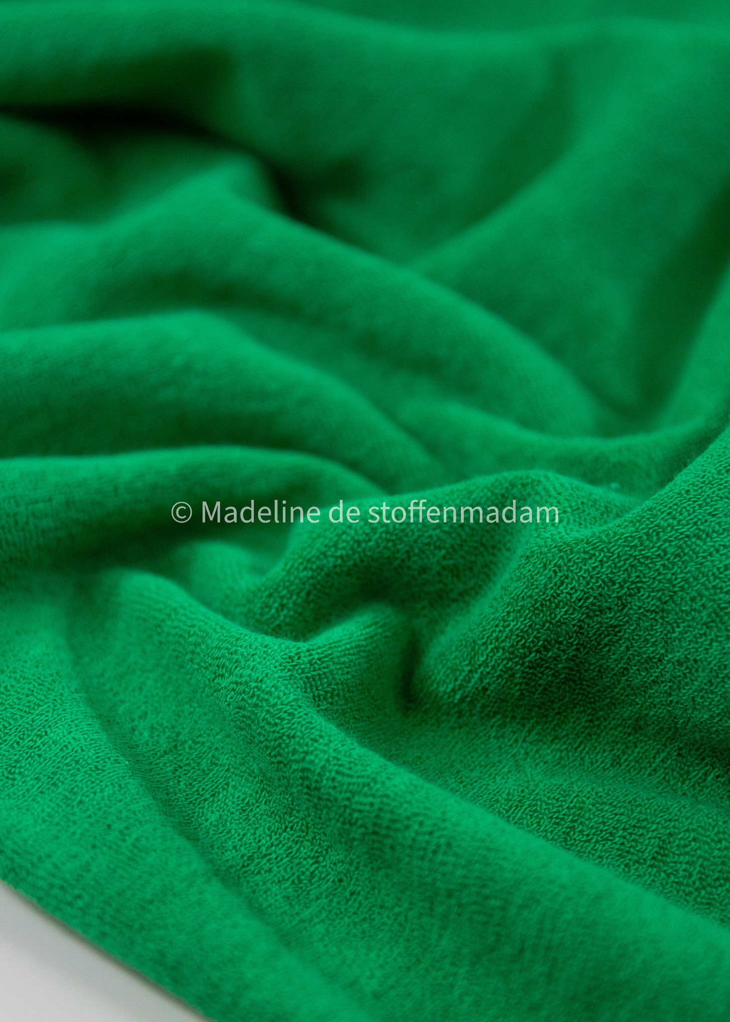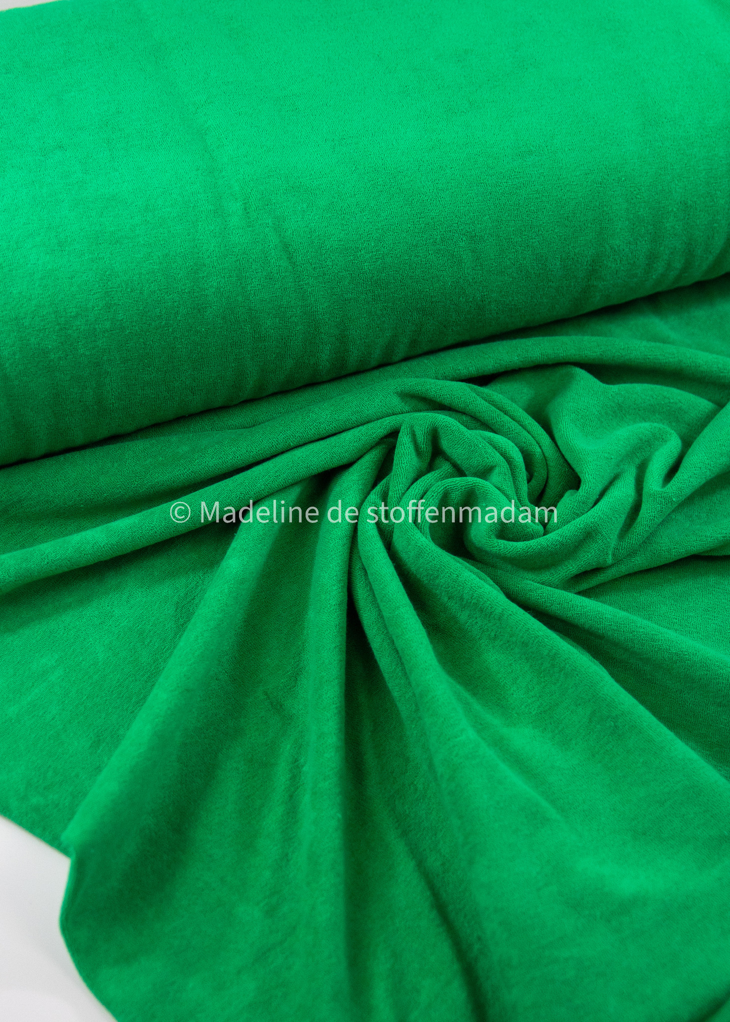 grasgroen spons - rekbare badstof - Madeline de stoffenmadam - Stoffenwinkel Lier ( Antwerpen )