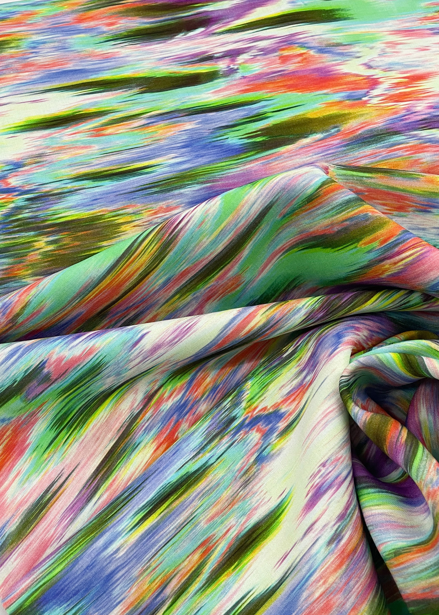 Een klassevolle viscose met print. Ideaal voor soepelvallende jurken, rokken, blouses. Hoeft niet gevoerd te worden. OEKO TEX