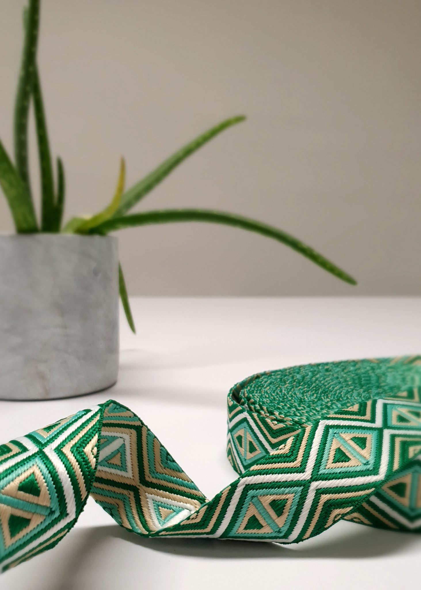 groen en beige - tribal - tassenband 38 mm - Madeline de stoffenmadam - Stoffenwinkel Lier ( Antwerpen )