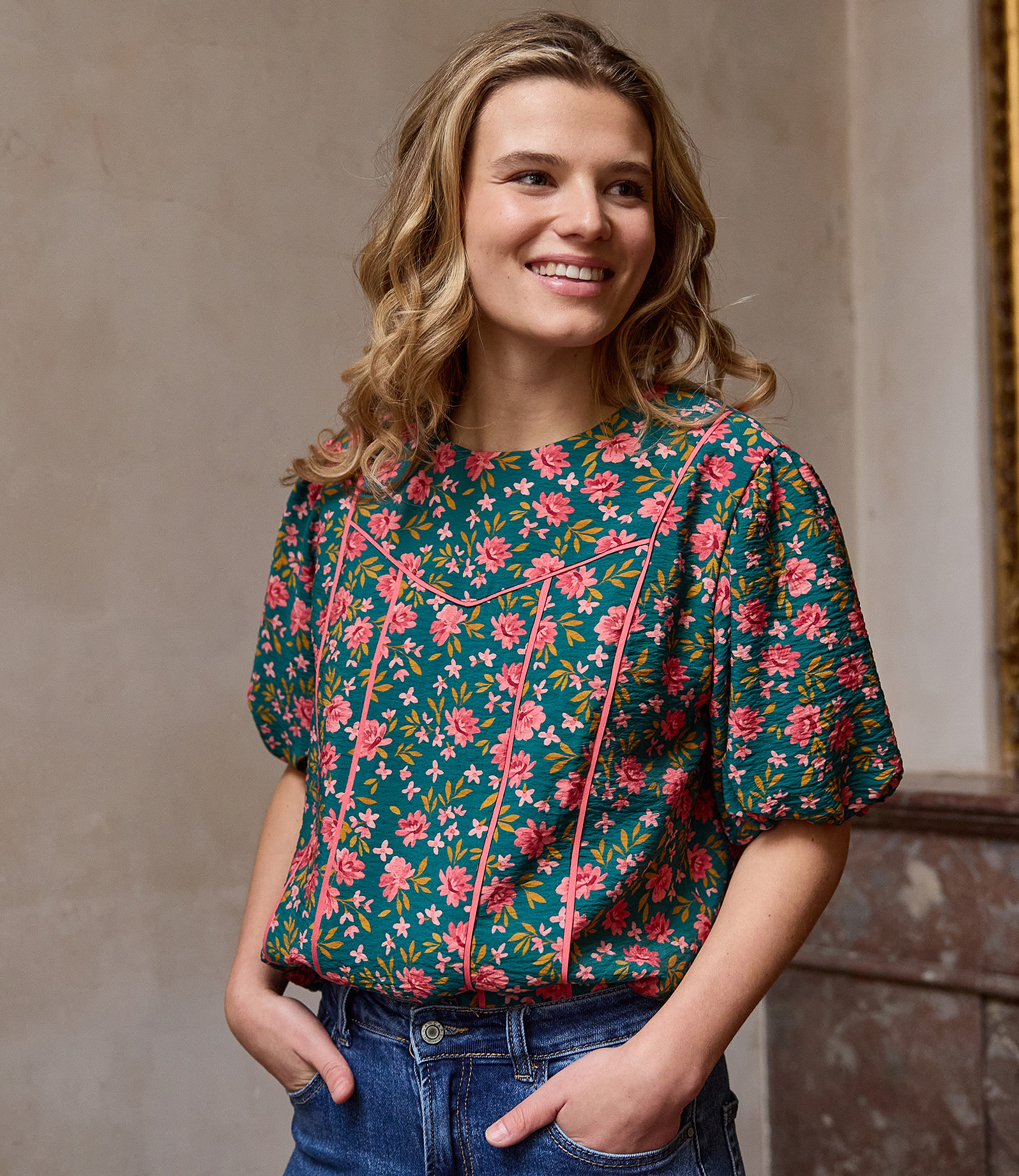 Atelier Jupe maakte de Rosie bloes in deze stof.
