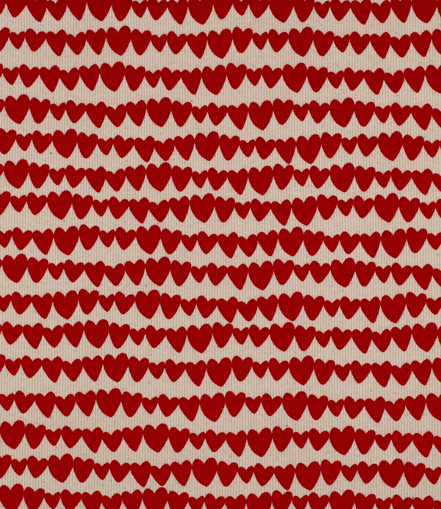 Een geribbelde tricot met hartjes op een ecru ondergrond. Supertof voor kinder- en babykleding. OEKO-tex