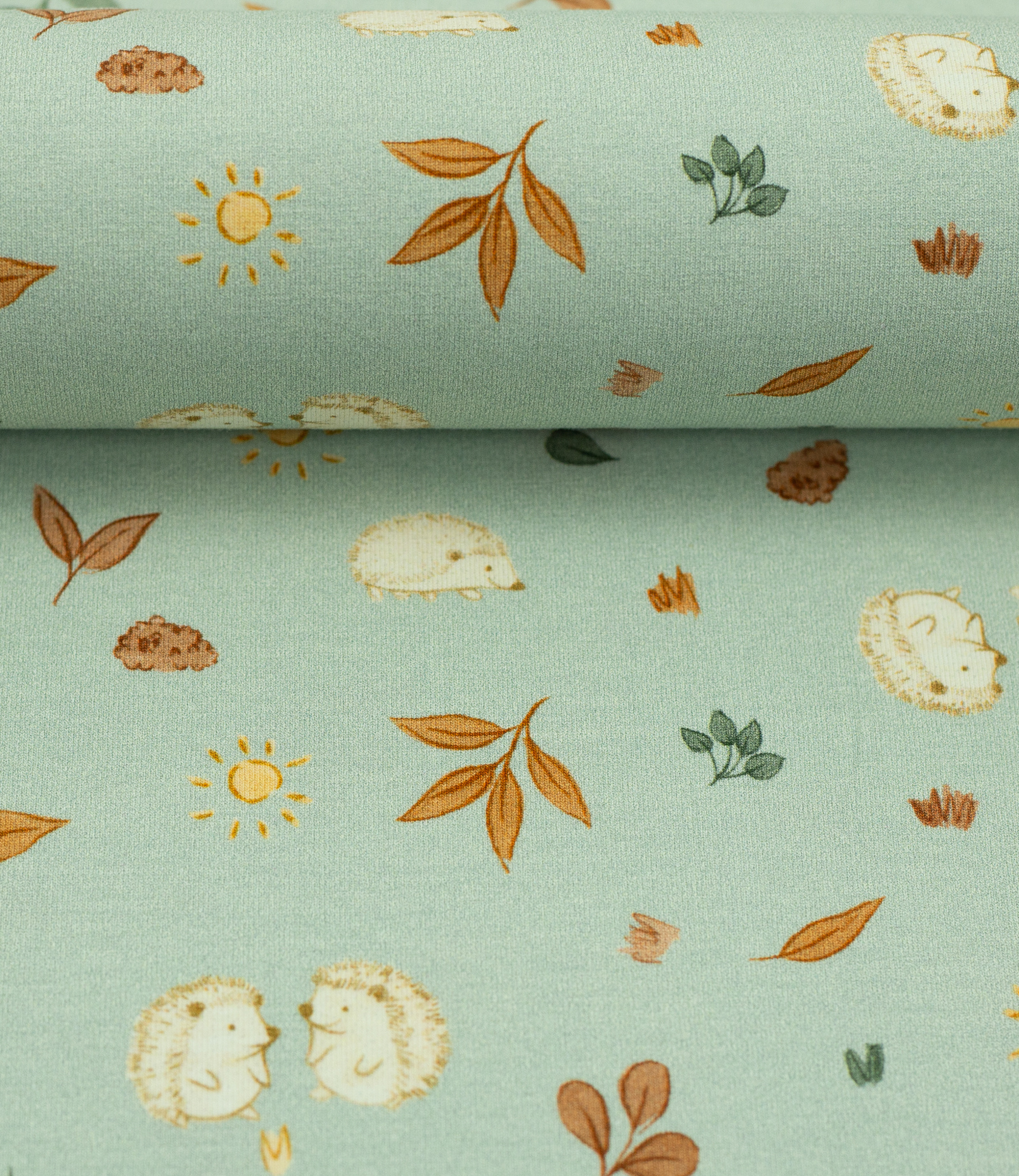 Een zachte tricot met schattige egeltjes. Swafing Stoffe. OEKO-tex gecertificeerd.