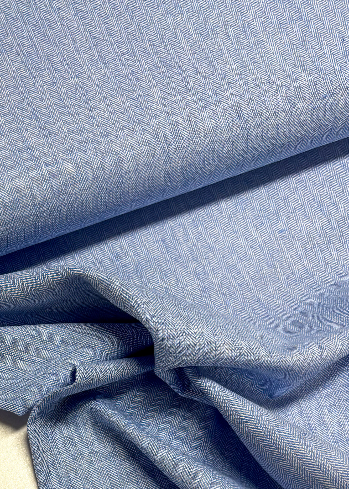 Een soepelvallende linnen katoen mix (chambray) met chevron motief.