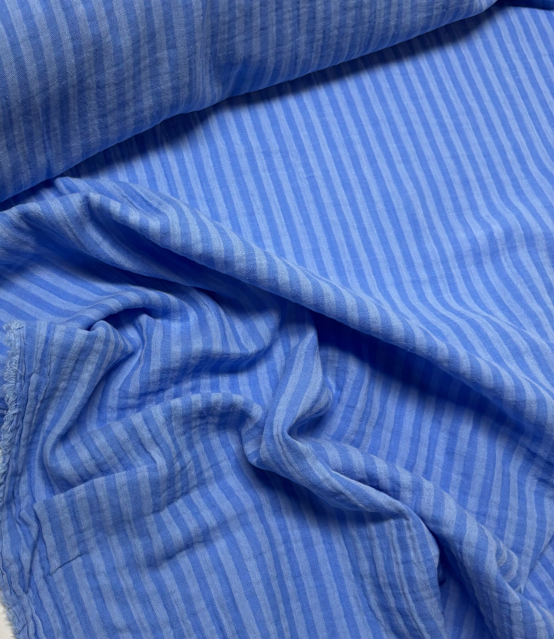 hemelsblauw streepjes double face - double gauze/tetra - Madeline de stoffenmadam - Stoffenwinkel Lier ( Antwerpen )