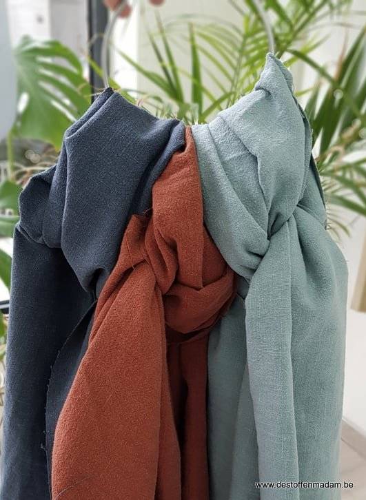 Onze Ramie voelt aan als linnen, ademt en is zacht voor de huid. Deze stof is zwaar genoeg voor vestjes of jassen, maar is ook fantastisch voor kleedjes, broeken, rokjes en bloezen.