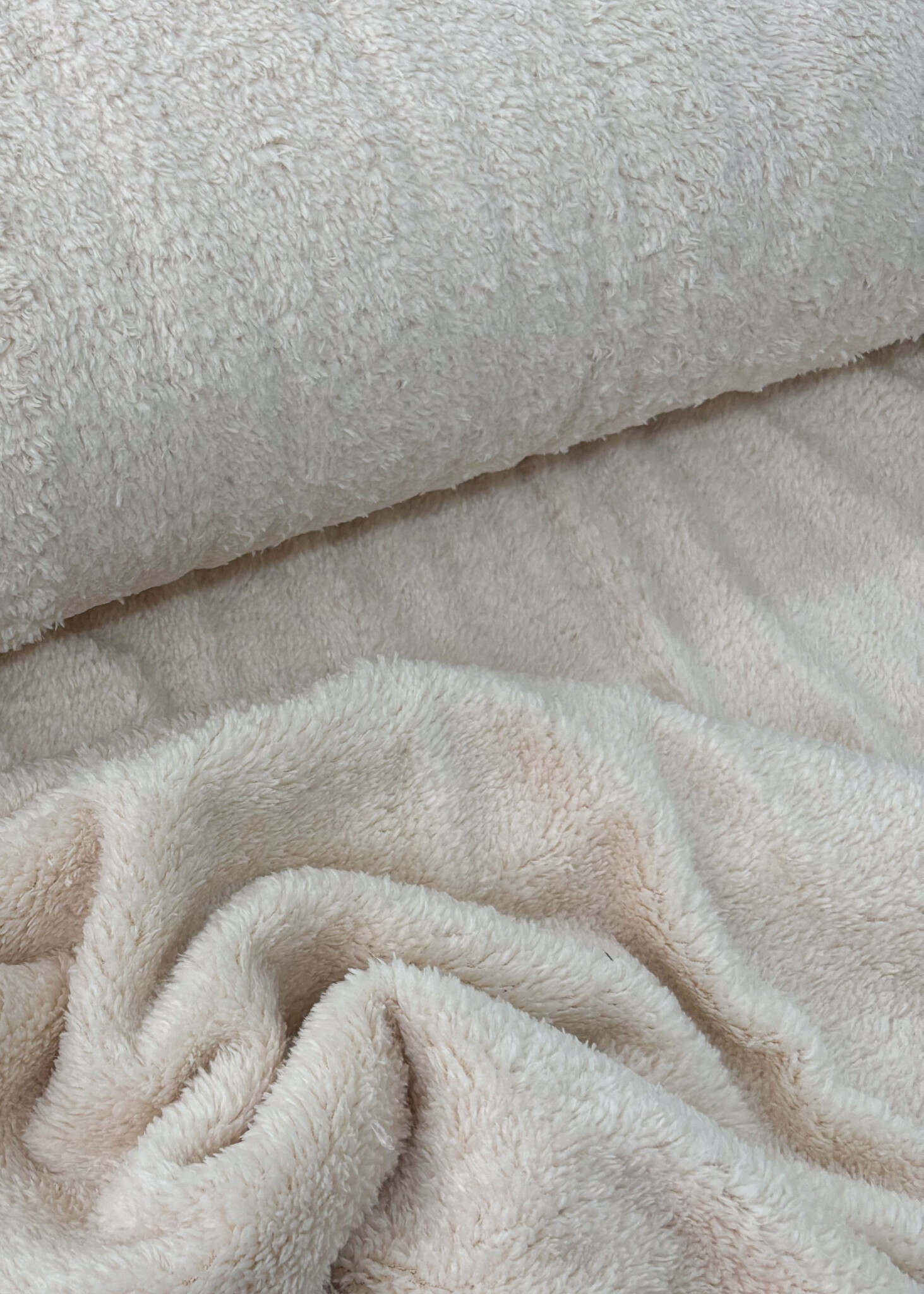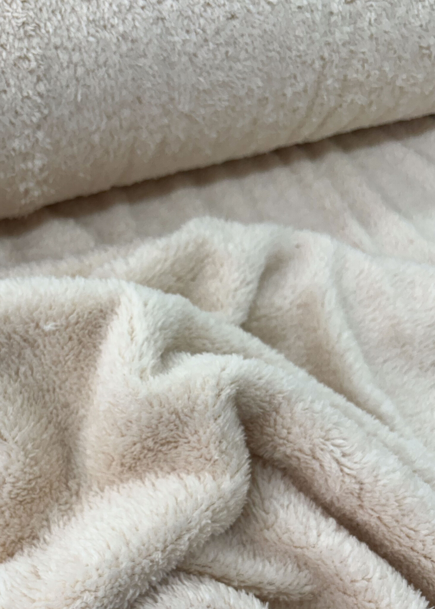 Heerlijk zachte sherpa teddy. Mooi, dicht geweven waardoor hij niet té hard rekt en perfect geschikt is om sweaters van te maken.