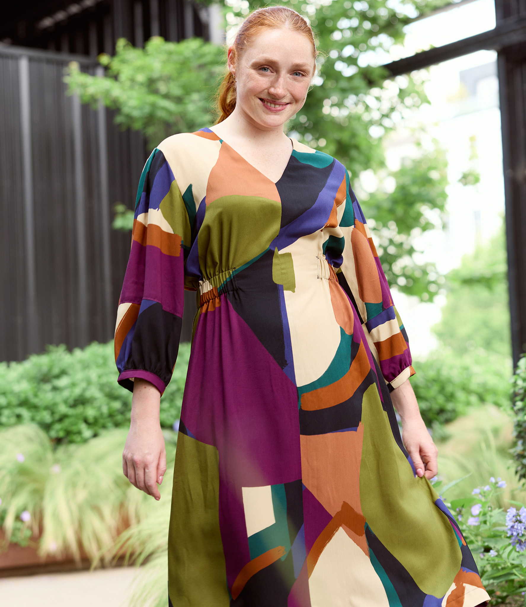Met naaipatroon Jamie maak je een jurk die opvalt door haar leuke details en zwierige rok! De mouwen zijn een echte blikvanger: een platte plooi aan de mouwkop en een gefronst tussenstuk onderaan dat afgewerkt is met een fijn mouwbandje. Aan de zijkanten van de jurk stik je een tunneltje met elastiek aan de binnenkant waardoor Jamie mooi aansluit in de taille. Liever een accent dat meer opvalt? Kies dan om het tunneltje aan de buitenkant te stikken en er het leuke knooplint door te halen! Jamie is zowel aan de middenvoor als middenrug doorgesneden, wat het stikken van de V-hals net iets makkelijker maakt! Jamie komt prachtig tot haar recht in een effen stof - zo springen de details er echt uit - maar ze is net zo mooi in een print!