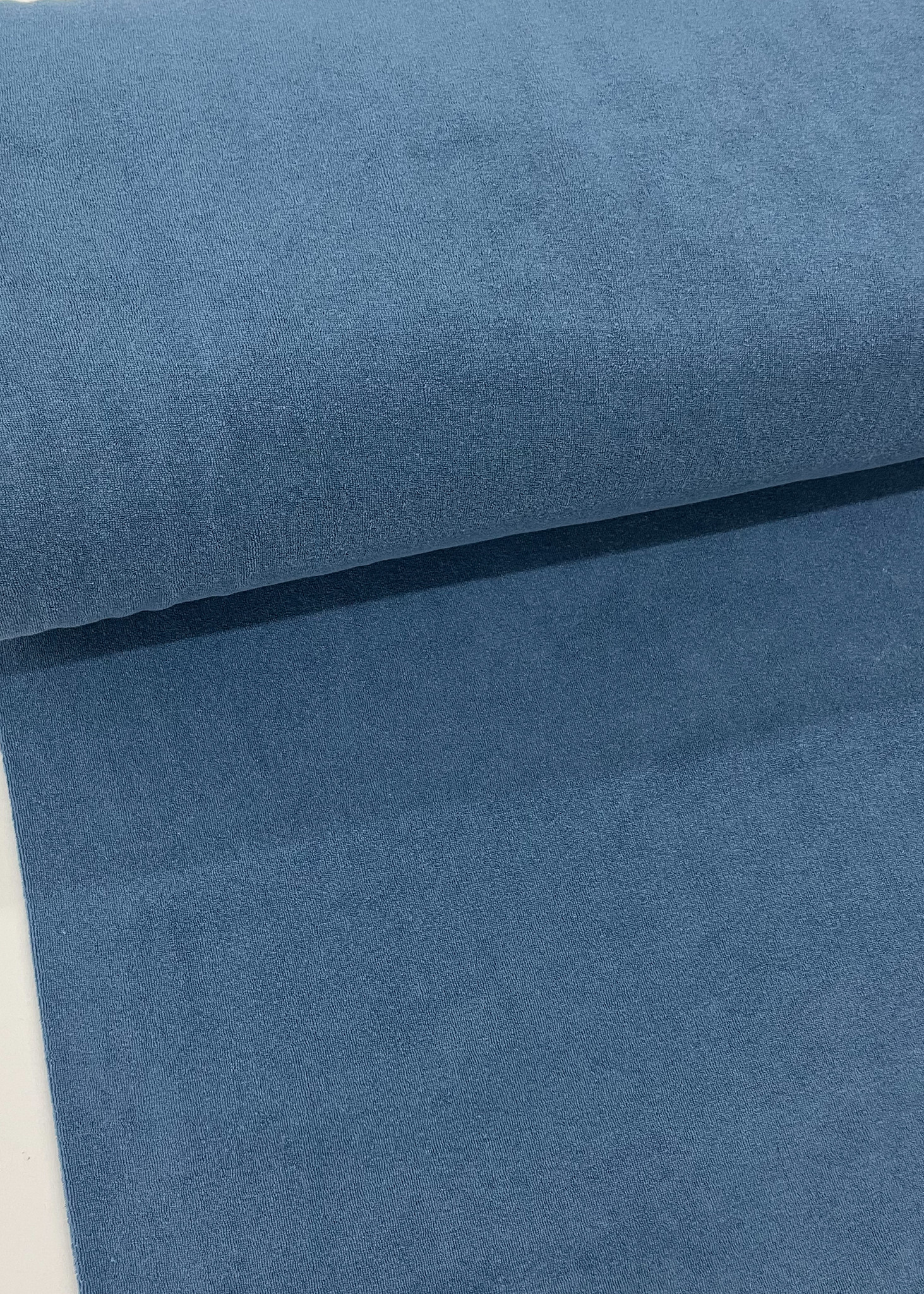 jeansblauw spons - rekbare badstof - Madeline de stoffenmadam - Stoffenwinkel Lier ( Antwerpen )