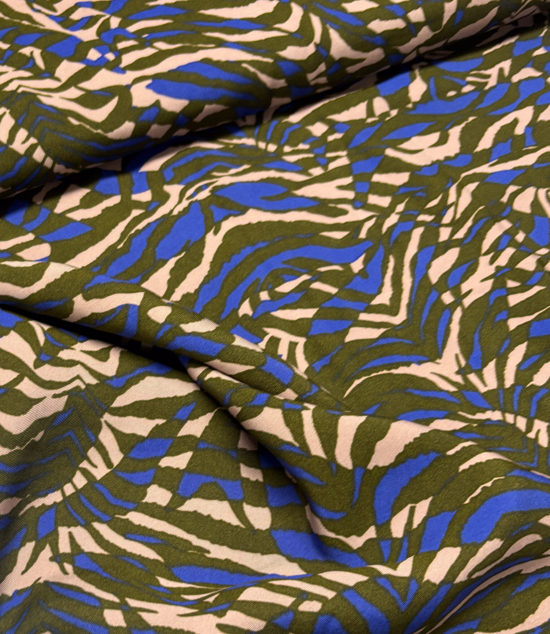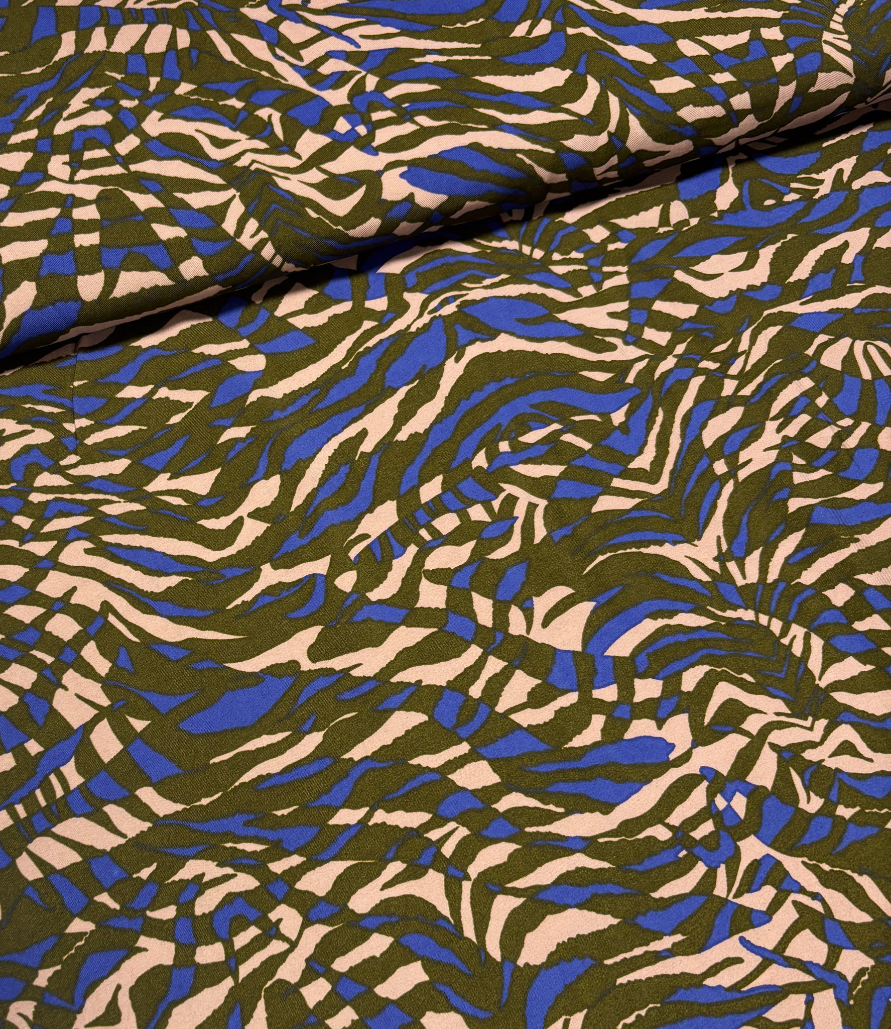 Geweven modal, polyester mix. Soepel, maar stevig. Deze soepelvallende stof valt mooi door en is perfect voor rokken, kleedjes, blouses en broeken.