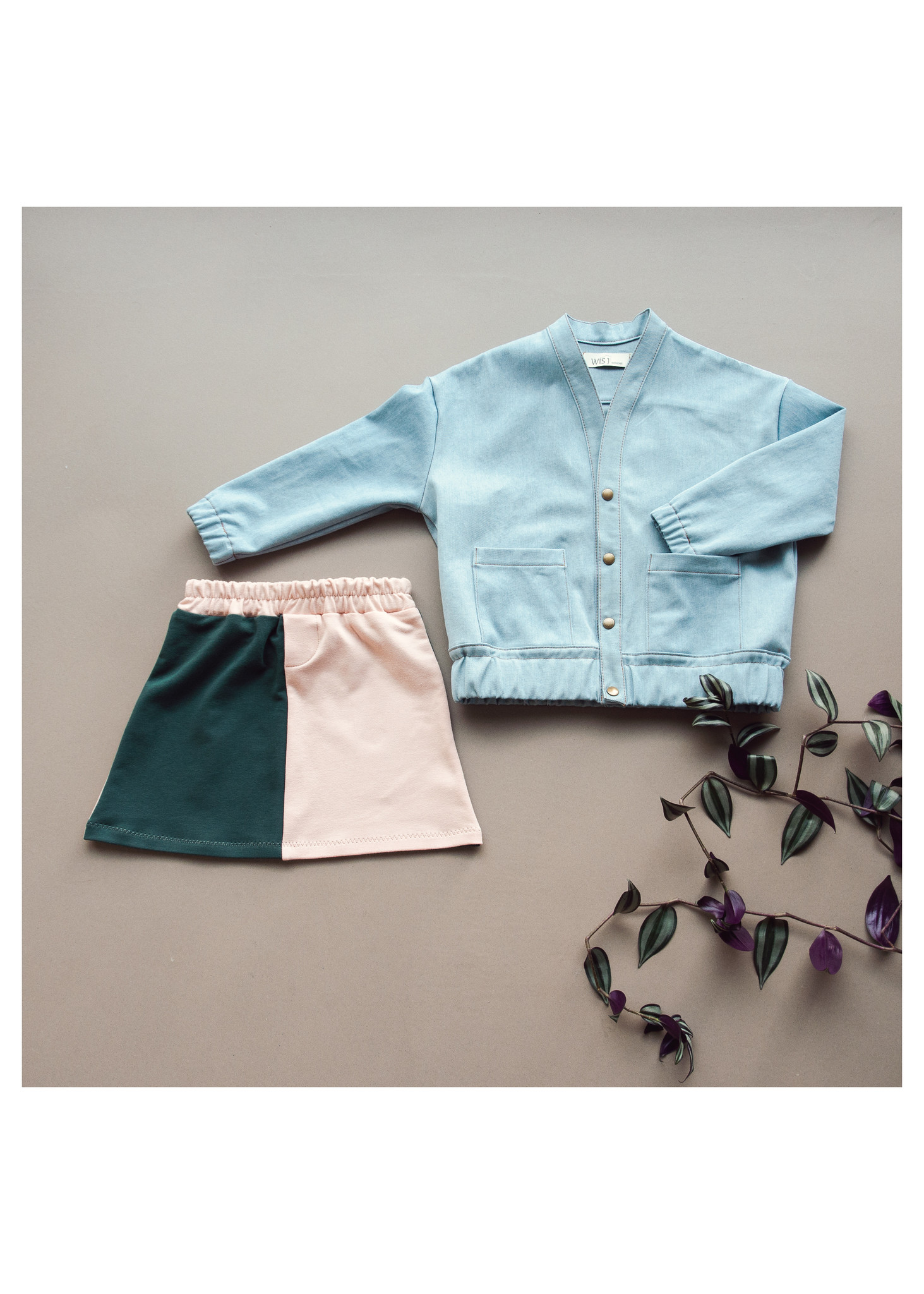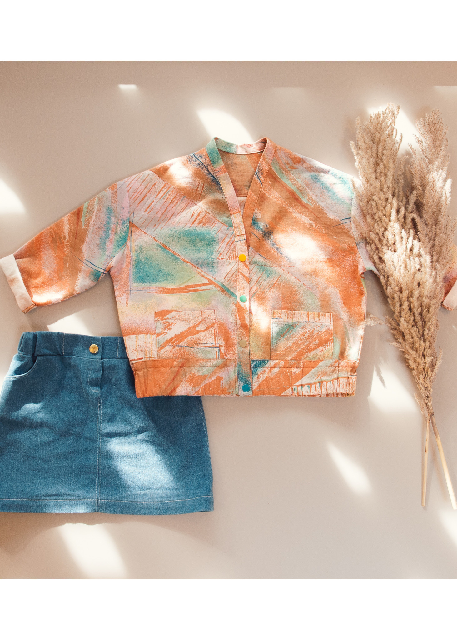Kjell is een wijde, stoere, boxy cardigan in maten 1 tot 14 jaar. Een allround vestje met uitgesneden hals, knoopjes, zakken en een rugpas. Kjell is ontworpen voor zowel rekbare als niet-rekbare stoffen. Denk aan french terry, spons, breisels, teddy, borg, corduroy, jeans, katoen, viscose, tencel, … Maak hem met boordstof aan polsen, hals en zoom waardoor het aanleunt bij een trui. Of kies voor een versie met elastiek in de zoomboord en aan de polsen en halsboord uit dezelfde stof als het vestje zelf waardoor Kjell de uitstraling van een stoer jasje krijgt.