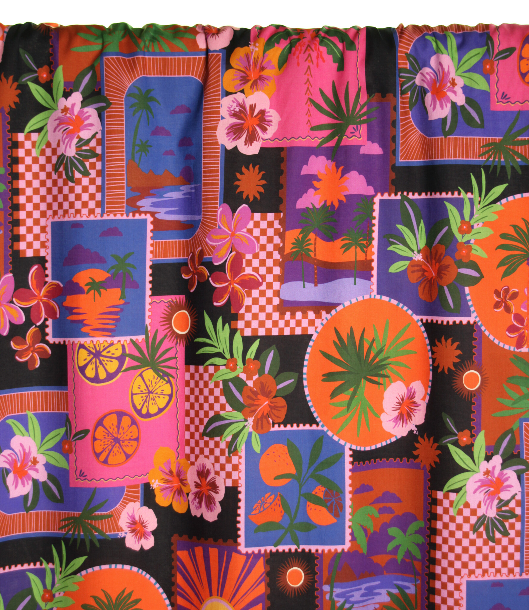 Een fijne, kleurrijke en zomerse katoen met print van zomerse elementen in vele kleuren. Deze stof is geschikt voor blouses, jurken, rokken,...