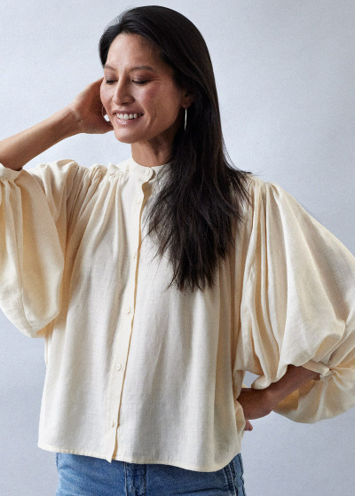 Een moderne versie van een romantische blouse met karaktervolle fronsen - La blouse - uit de collectie van Atelier Brunette
