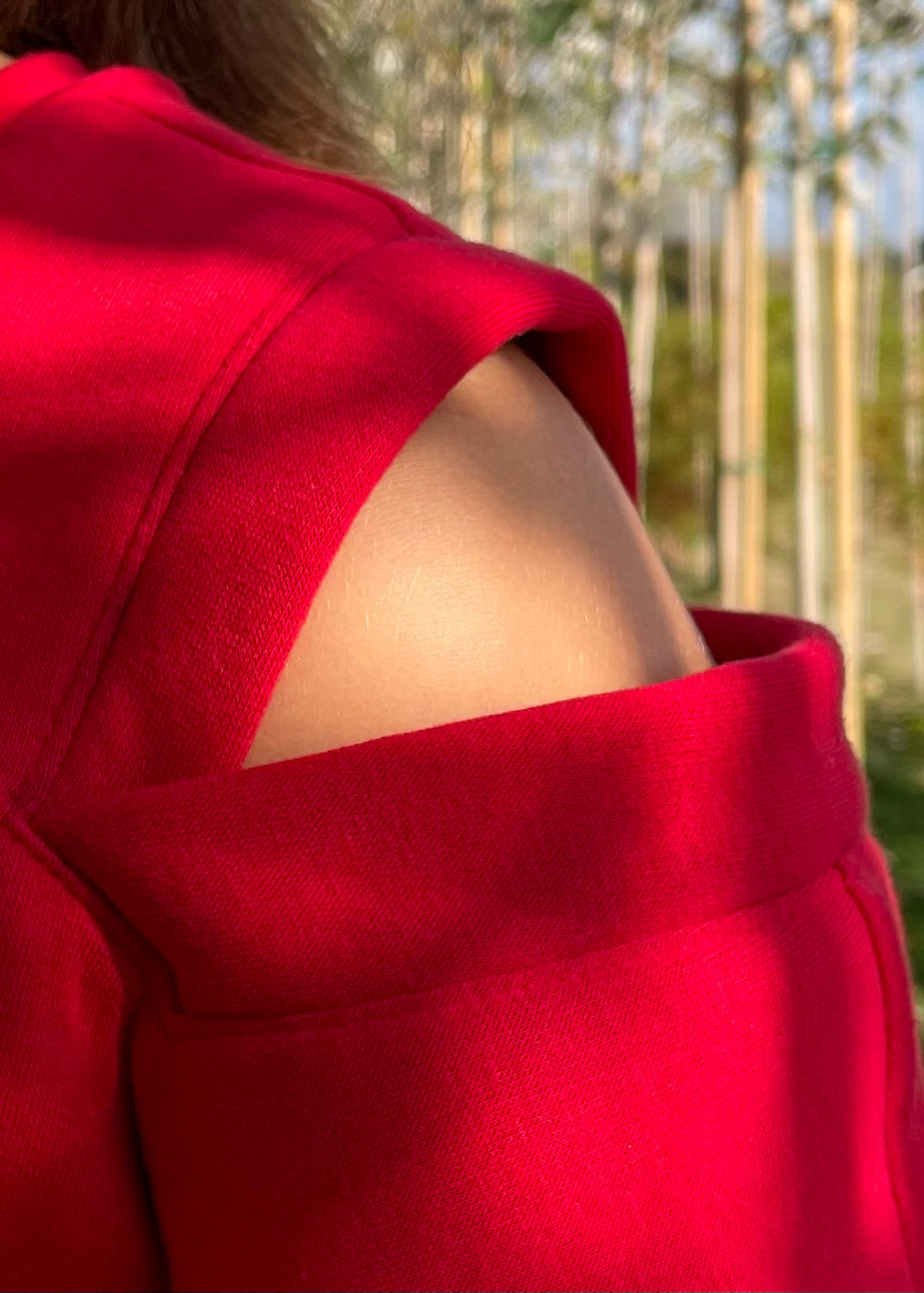 In de originele versie of met één van onze hacks: de open schouder of de mouw in jacquard.