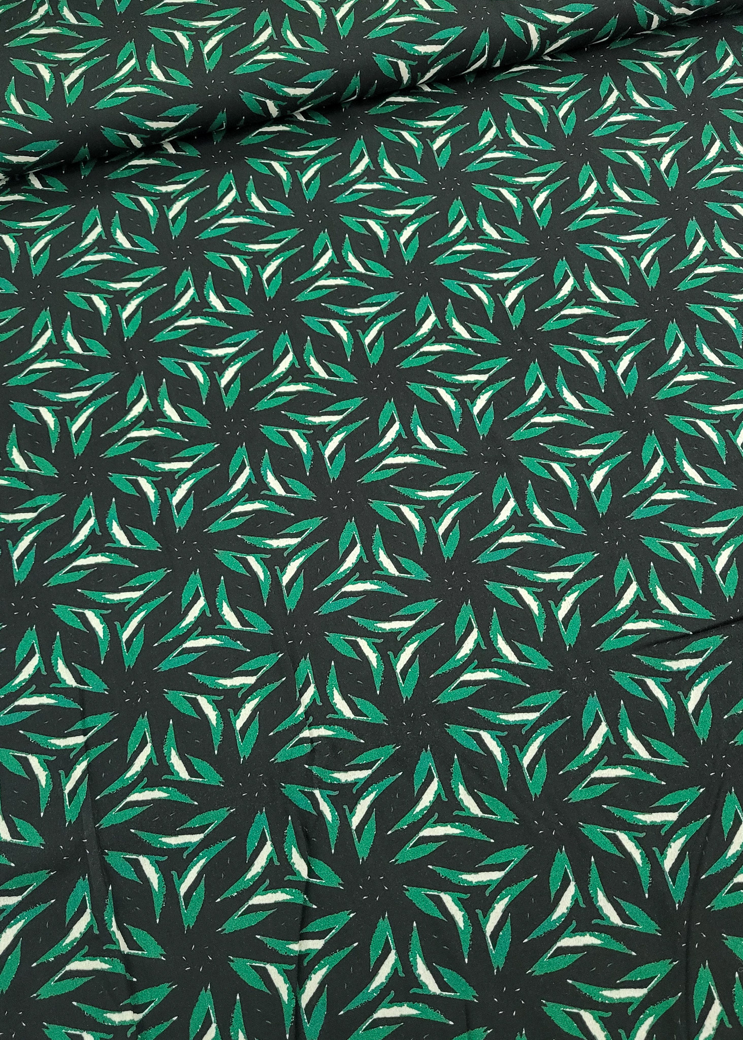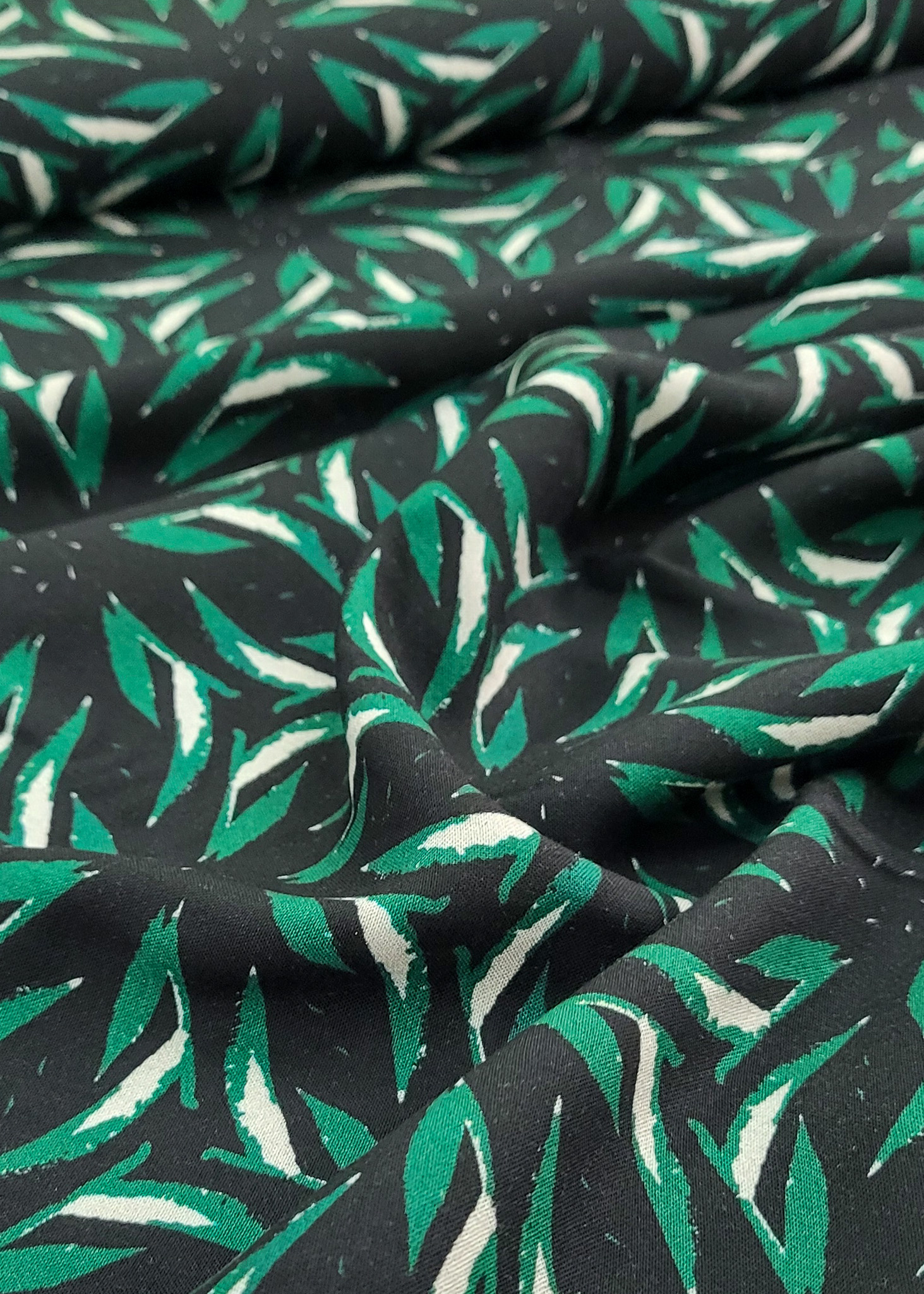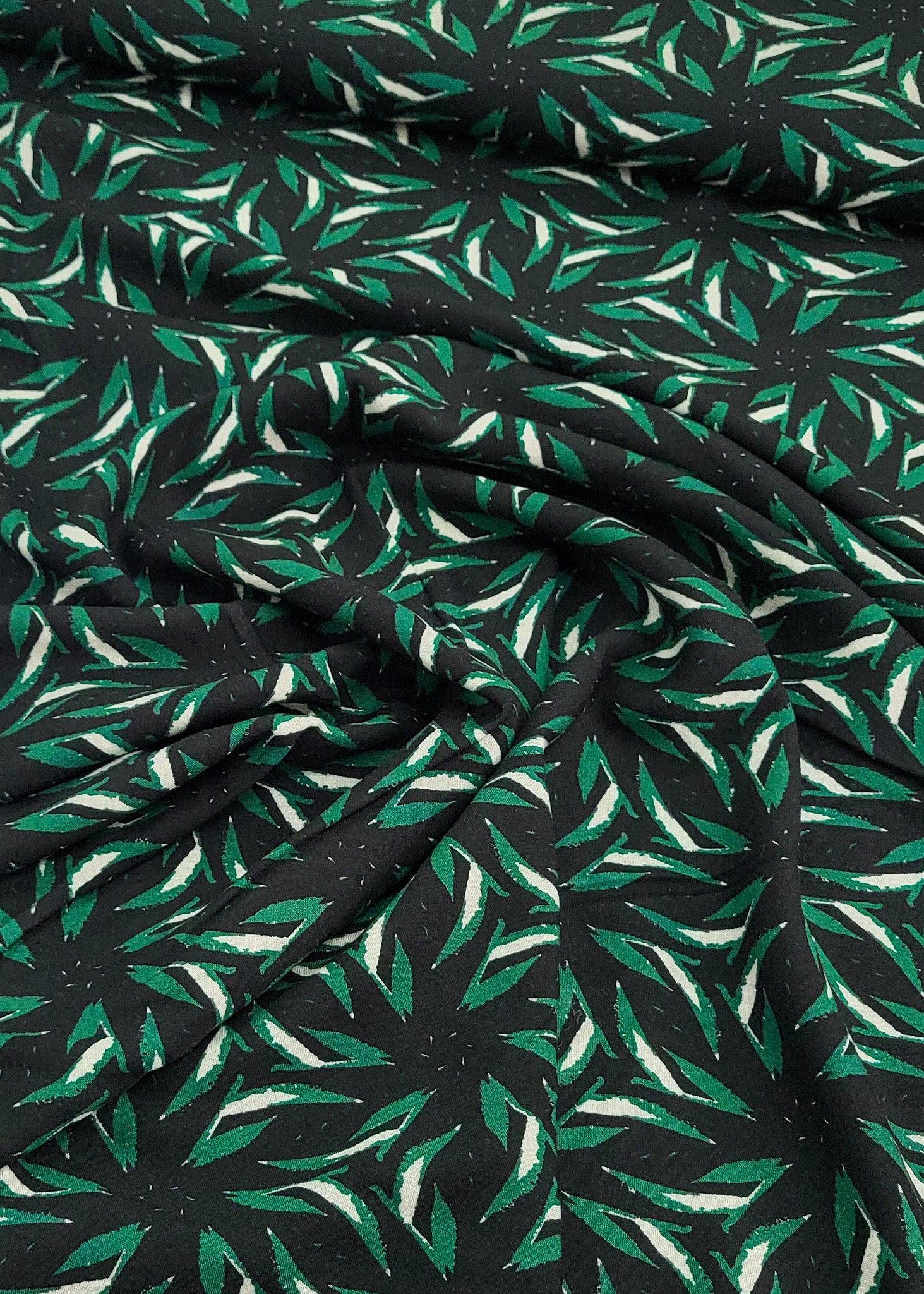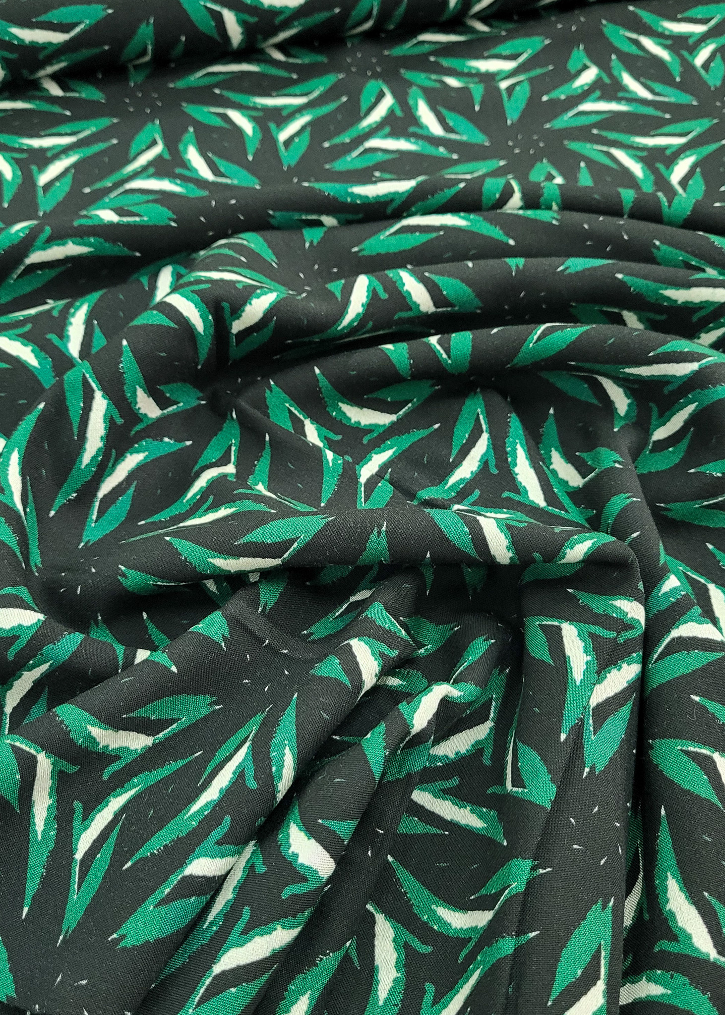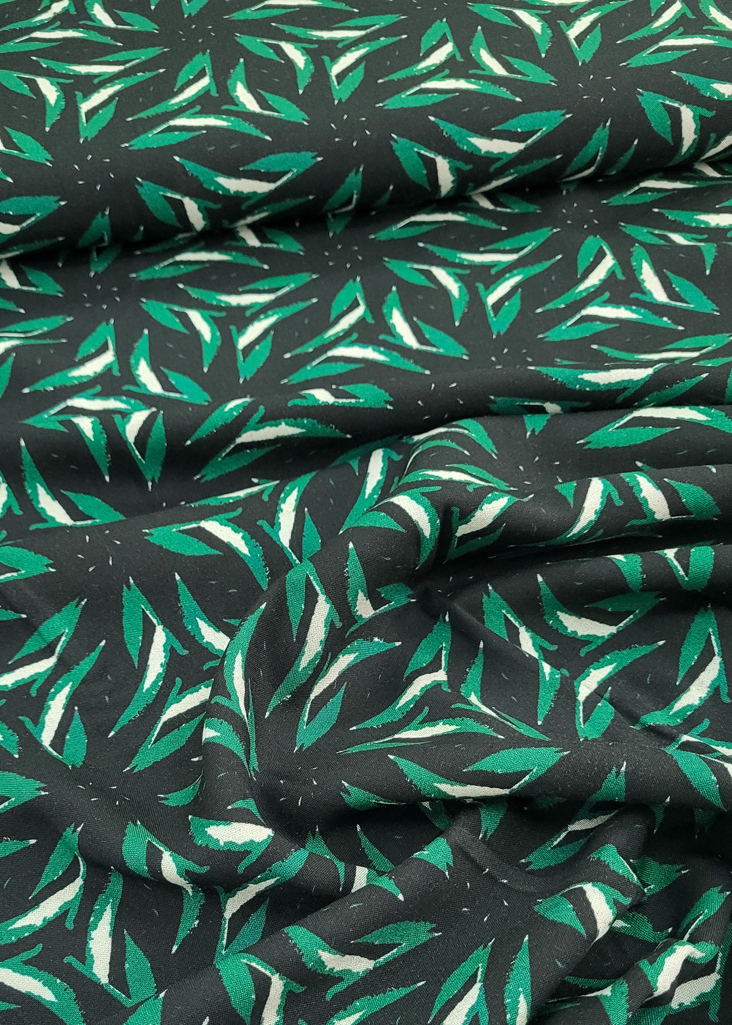 Hele mooie kwaliteit viscose met mooie bladerprint. Deze soepelvallende stof valt mooi door en is perfect voor rokken, kleedjes, blouses en broeken.