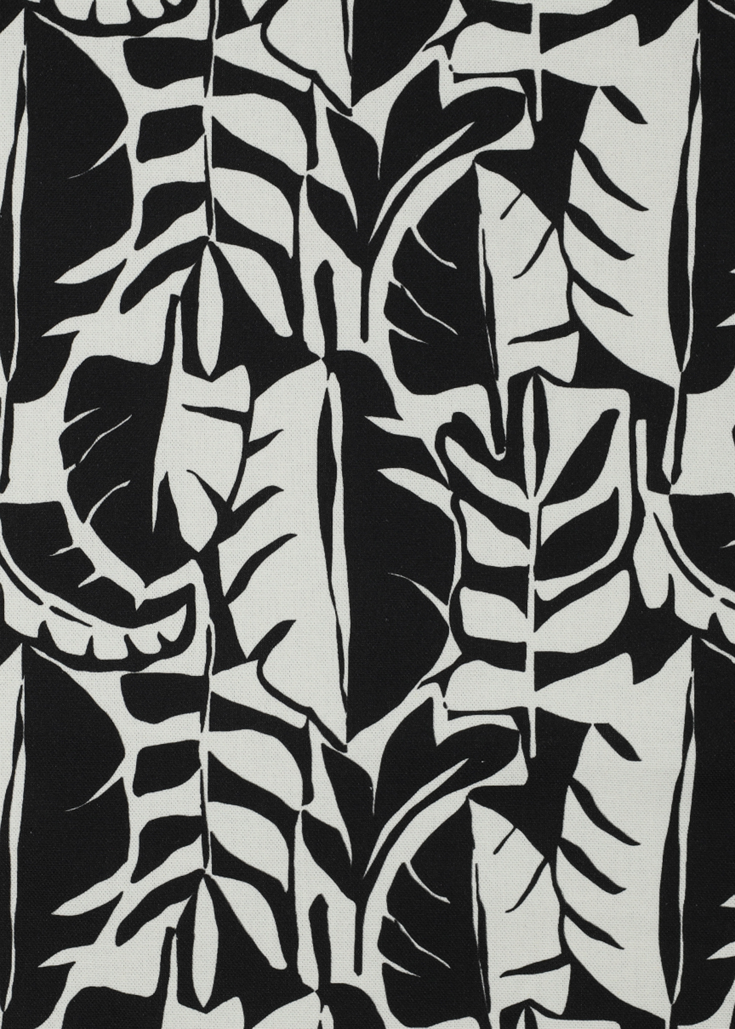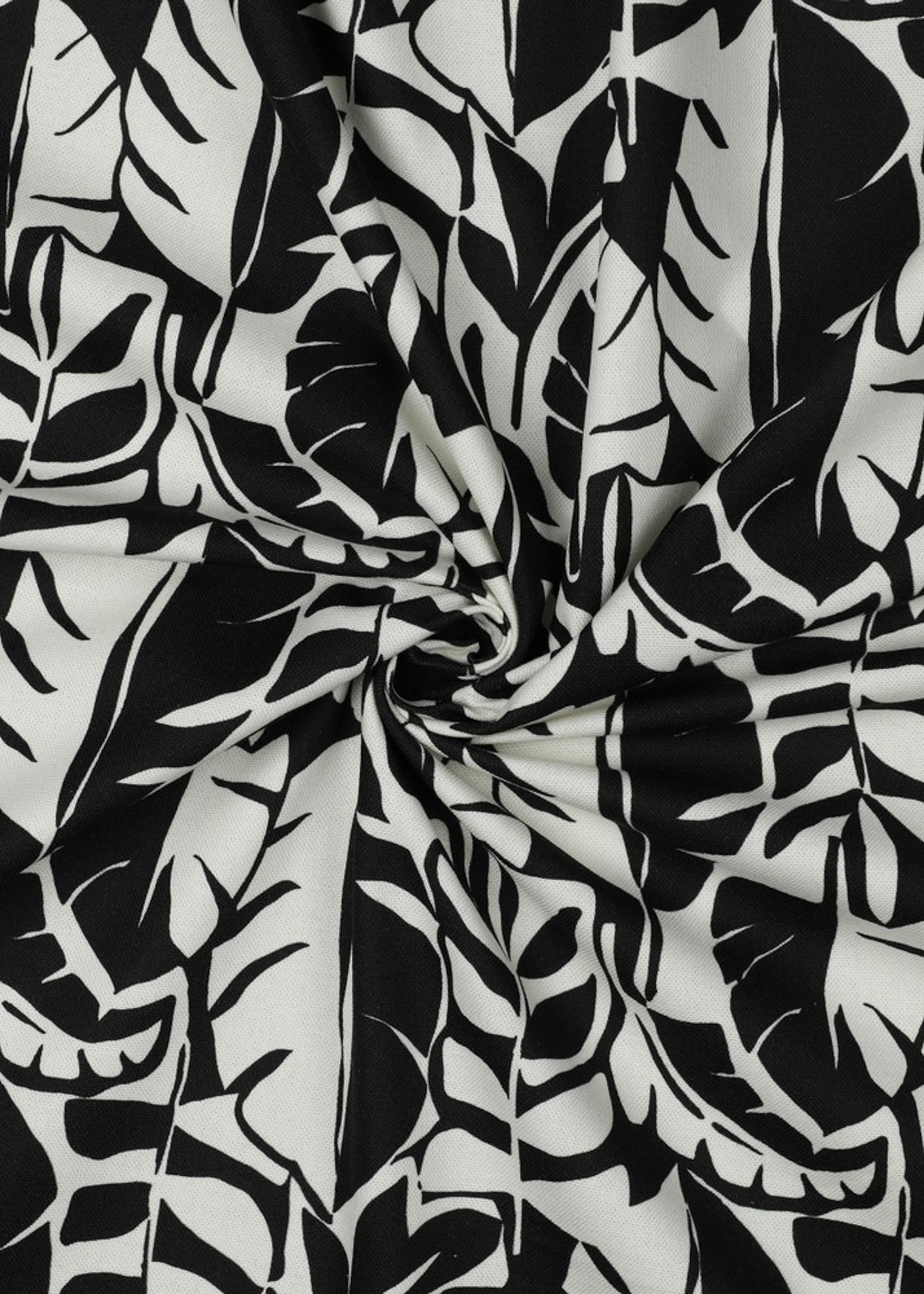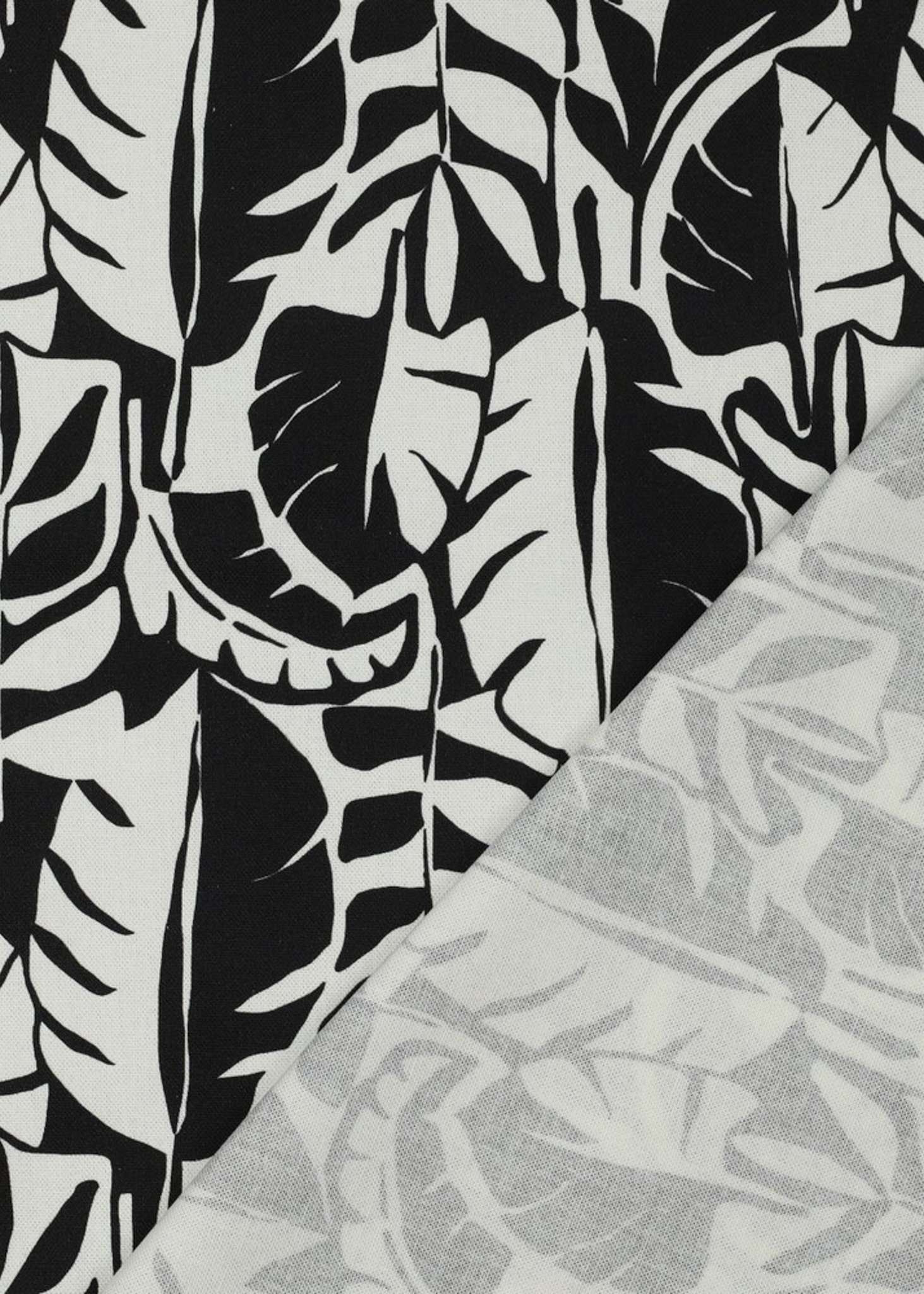 Een soepele en zachte canvas met toffe zwart-witte bladeren. Perfect voor tassen, decoratie, kussens, schorten, ...