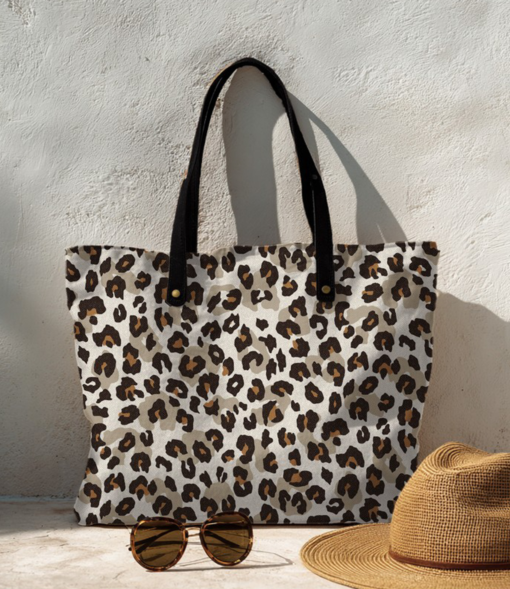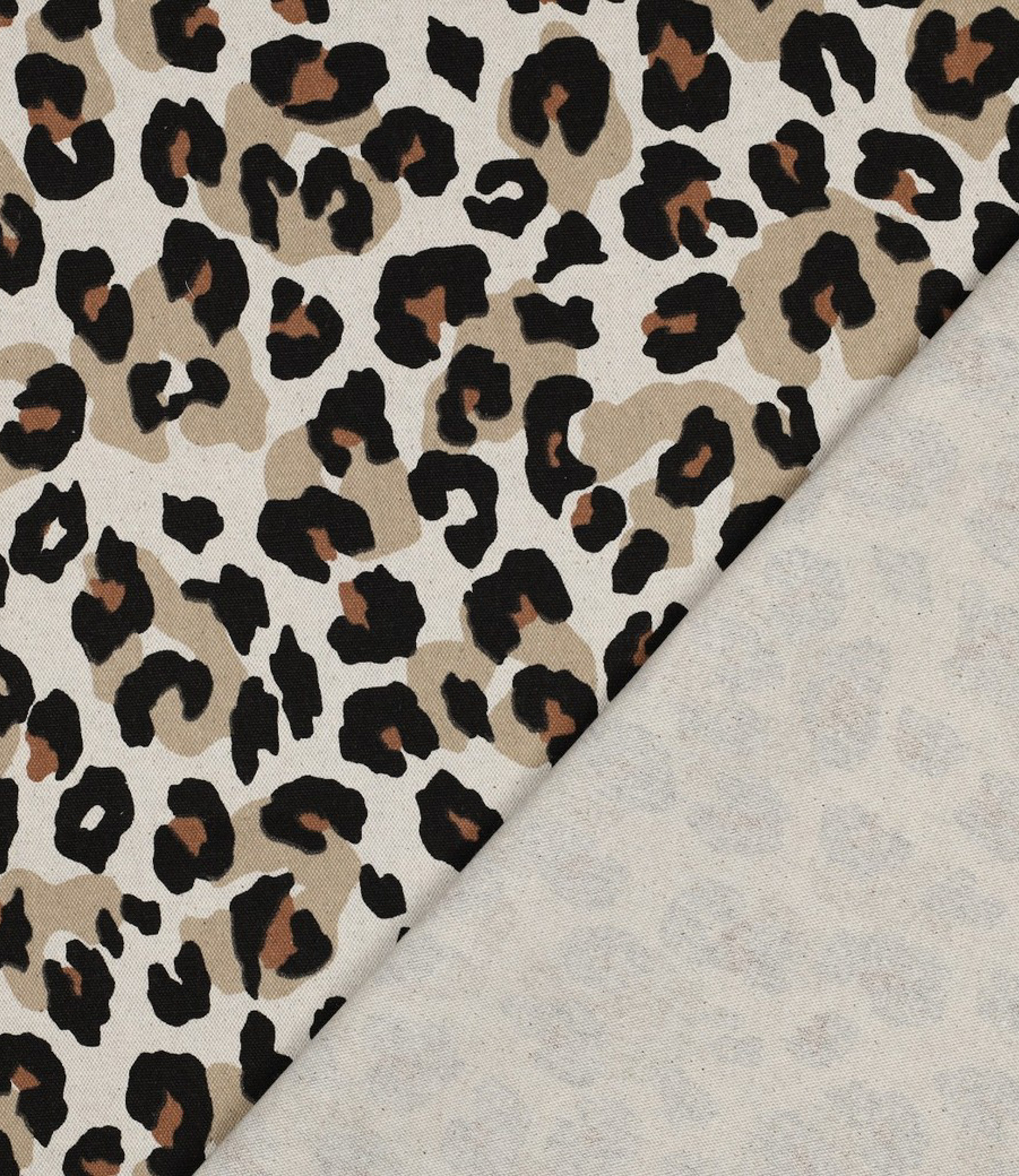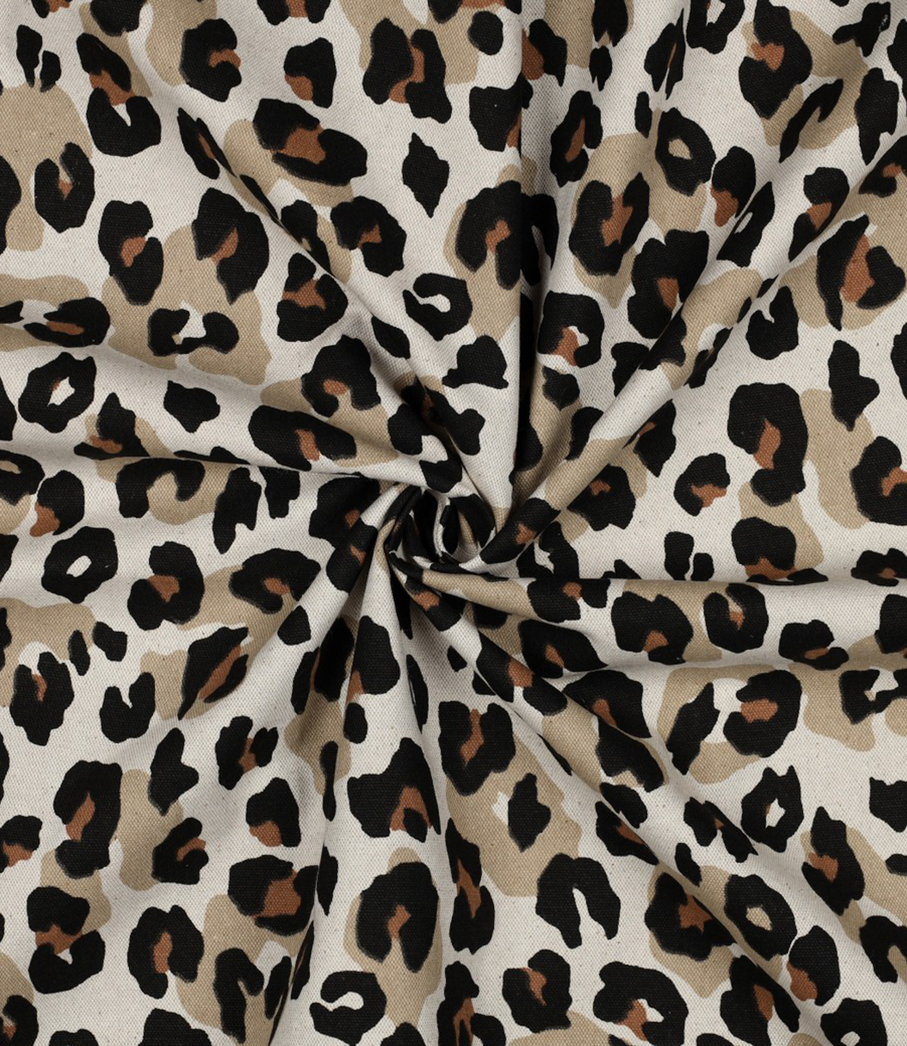 Een soepele en zachte linnenlook canvas met leopardprint. Perfect voor schorten, decoratie, servetten, broodmandjes, tafelkleedje, tassen, ...