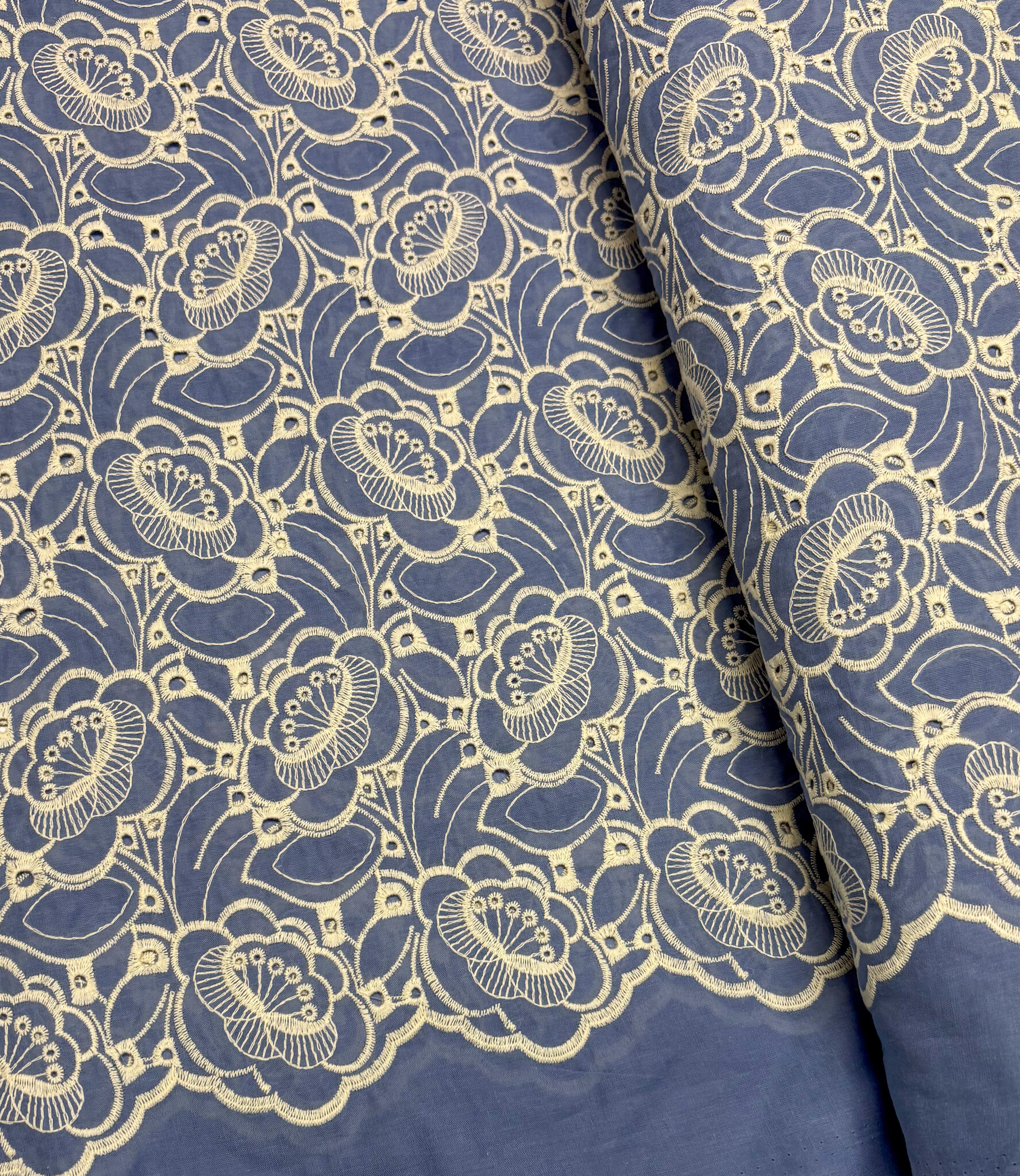 lichtblauw - prachtige broderie optie geschulpte rand - Madeline de stoffenmadam - Stoffenwinkel Lier ( Antwerpen )