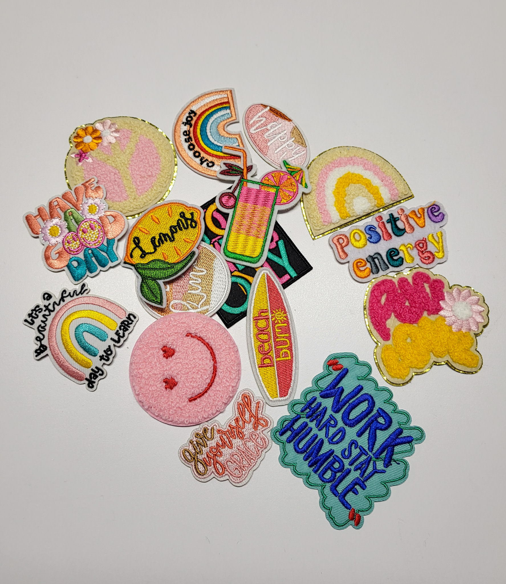✅ Twee patches om je tasjes op te vrolijken. - Eén smiley + één verrassing.
