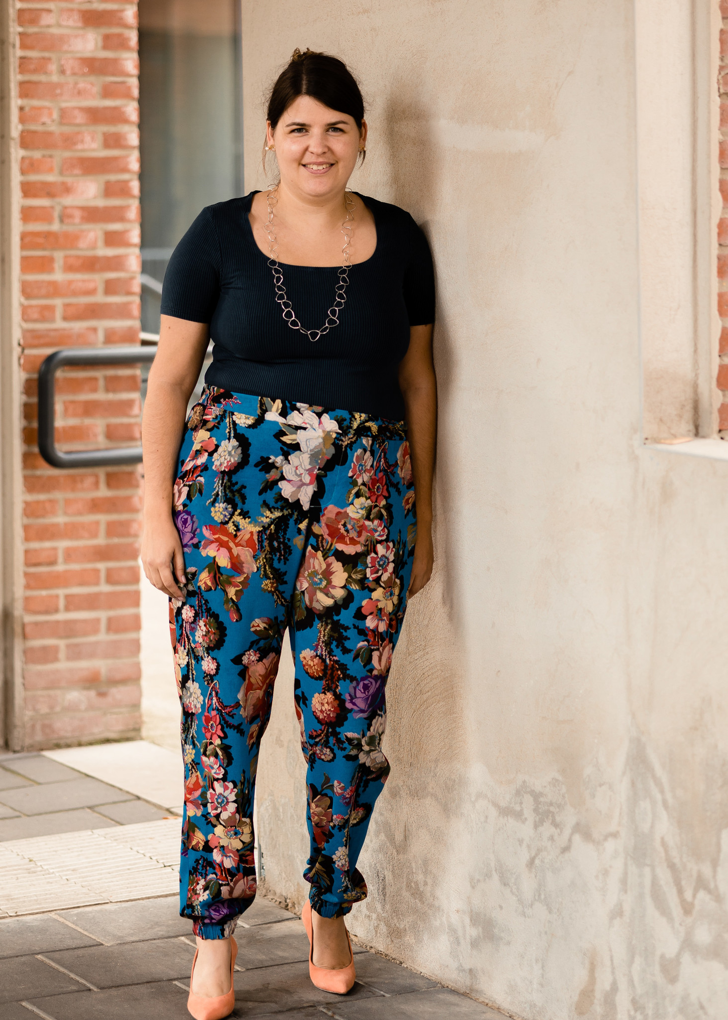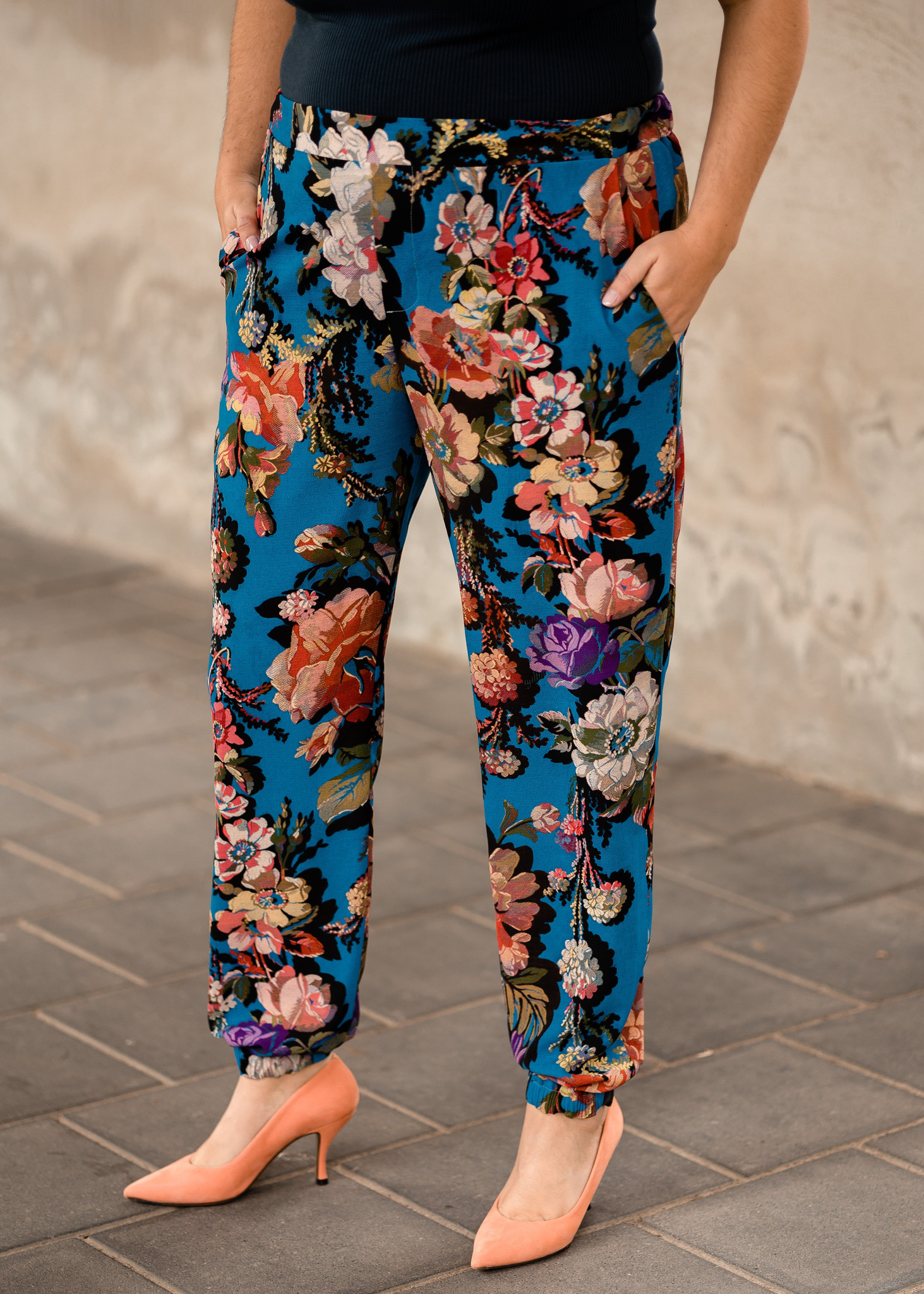 De Lily broek een ontwerp met licht toelopende pijpen en elastiek in de achterkant van de lendeband. Je kan kiezen tussen een kortere versie of een lange versie en optioneel kan je elastiek in de zoom, schuine zak aan het voorpand en achterzakken toevoegen. Het model heeft geen rits en geen plooien.