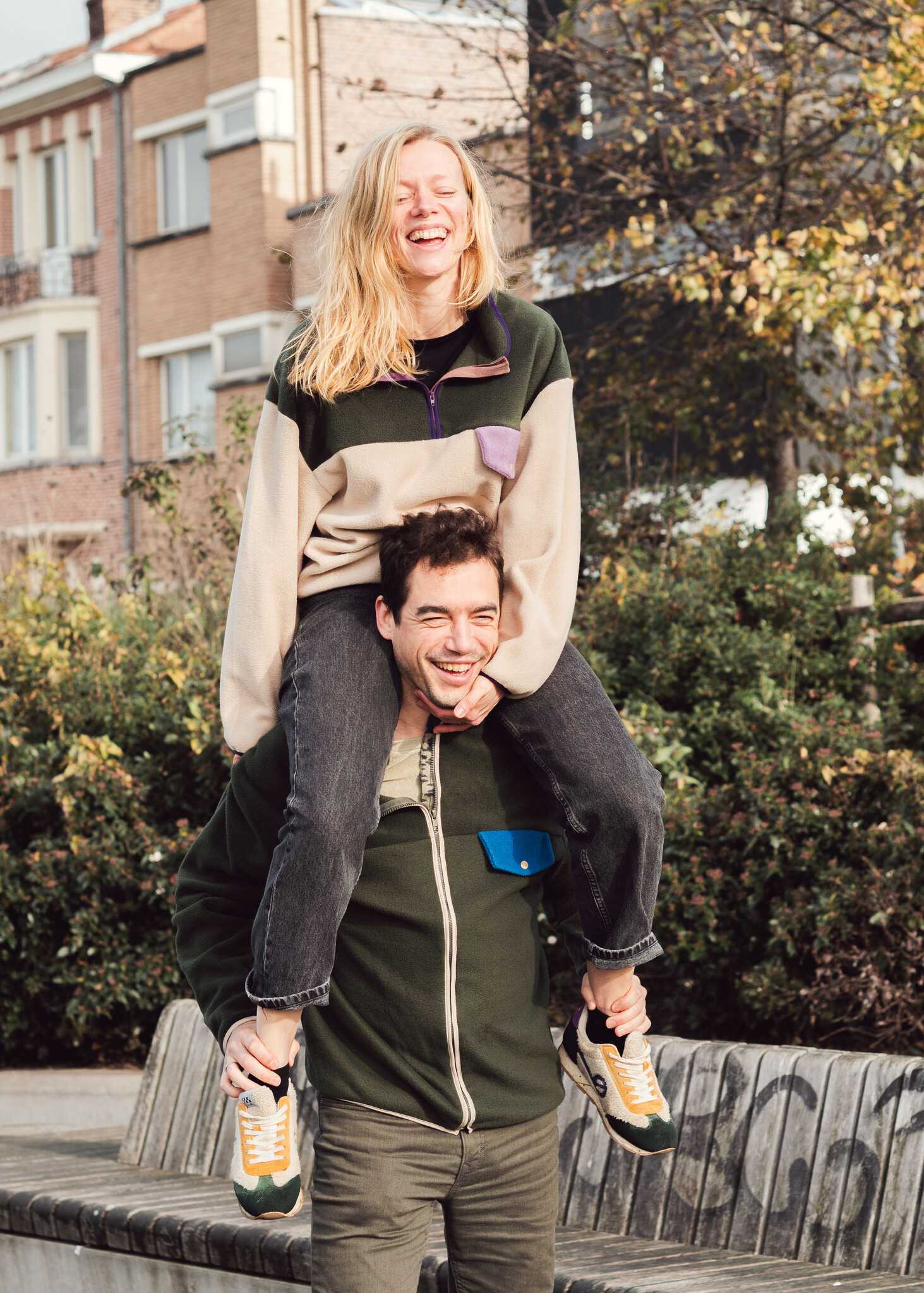 STOF: Fleece, wolmix, dikke sweaterstof, teddy, ... Alle warme, gezellige winterstoffen kunnen! Zelf de niet-rekbare. Je hebt ook biais nodig (zowel de verschillende soorten rekbare als niet-rekbare biais werken) en een rits (niet-deelbaar voor de sweater en deelbaar voor de jacket).