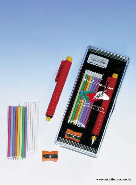 Een krijtpotloodset voor het tekenen op kleding. Een must-have tijdens het maken van jouw creatie!