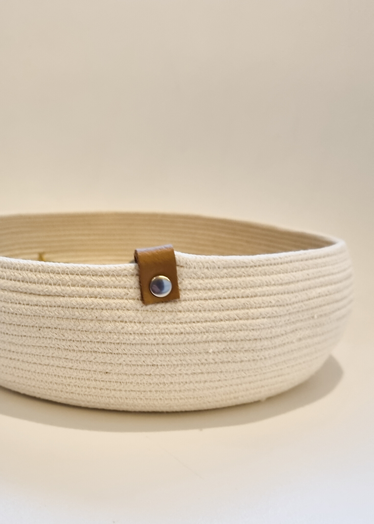 We gebruiken stevig katoenen touw, om het mooiste resultaat te bekomen. Een klos van 100 m is inbegrepen in de prijs. Hiermee maak je ongeveer 4 mandjes.