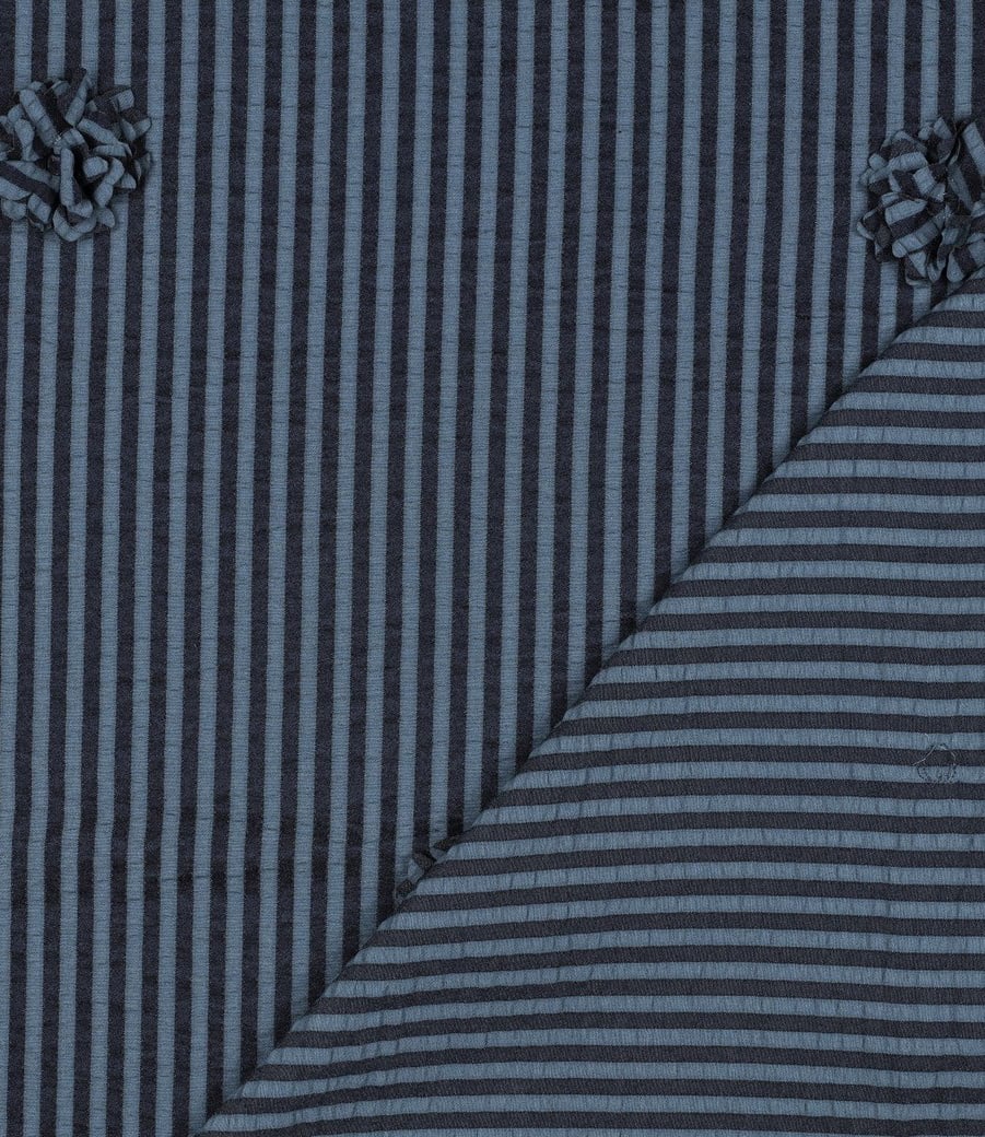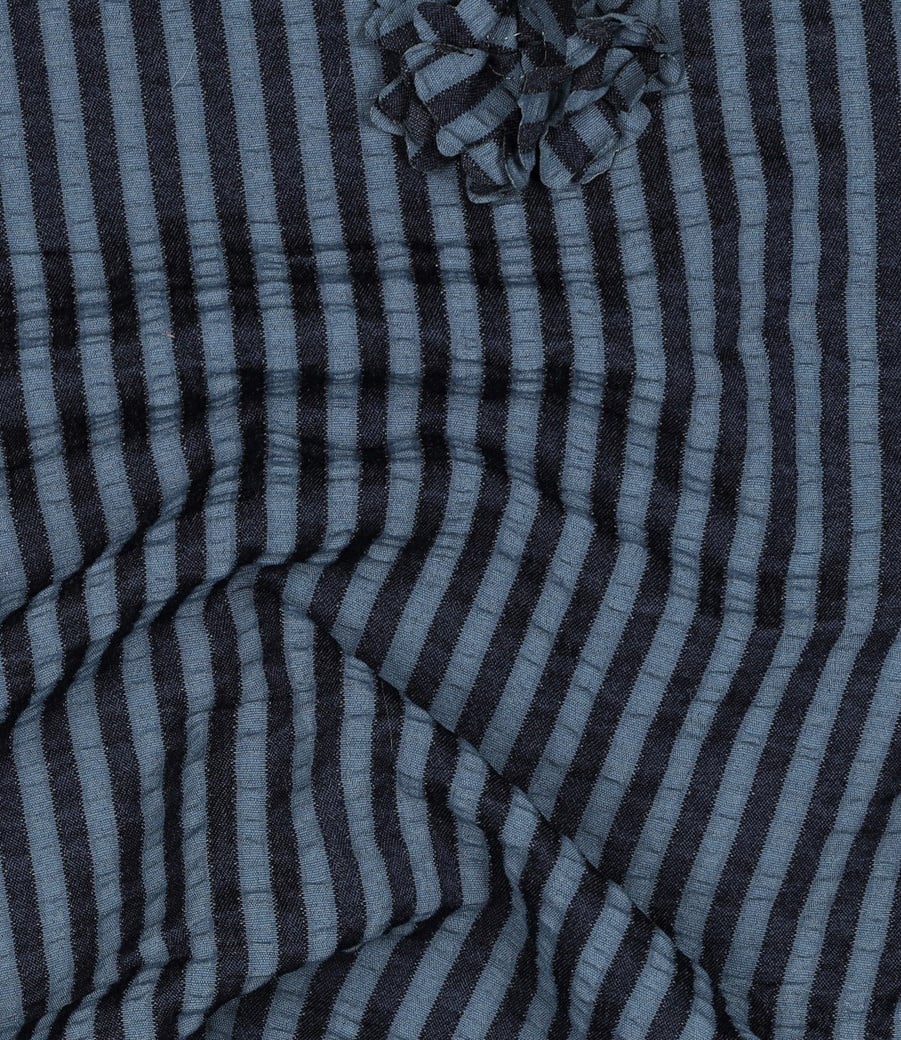 Een gestreepte seersucker met opgenaaide 3D bloemen.