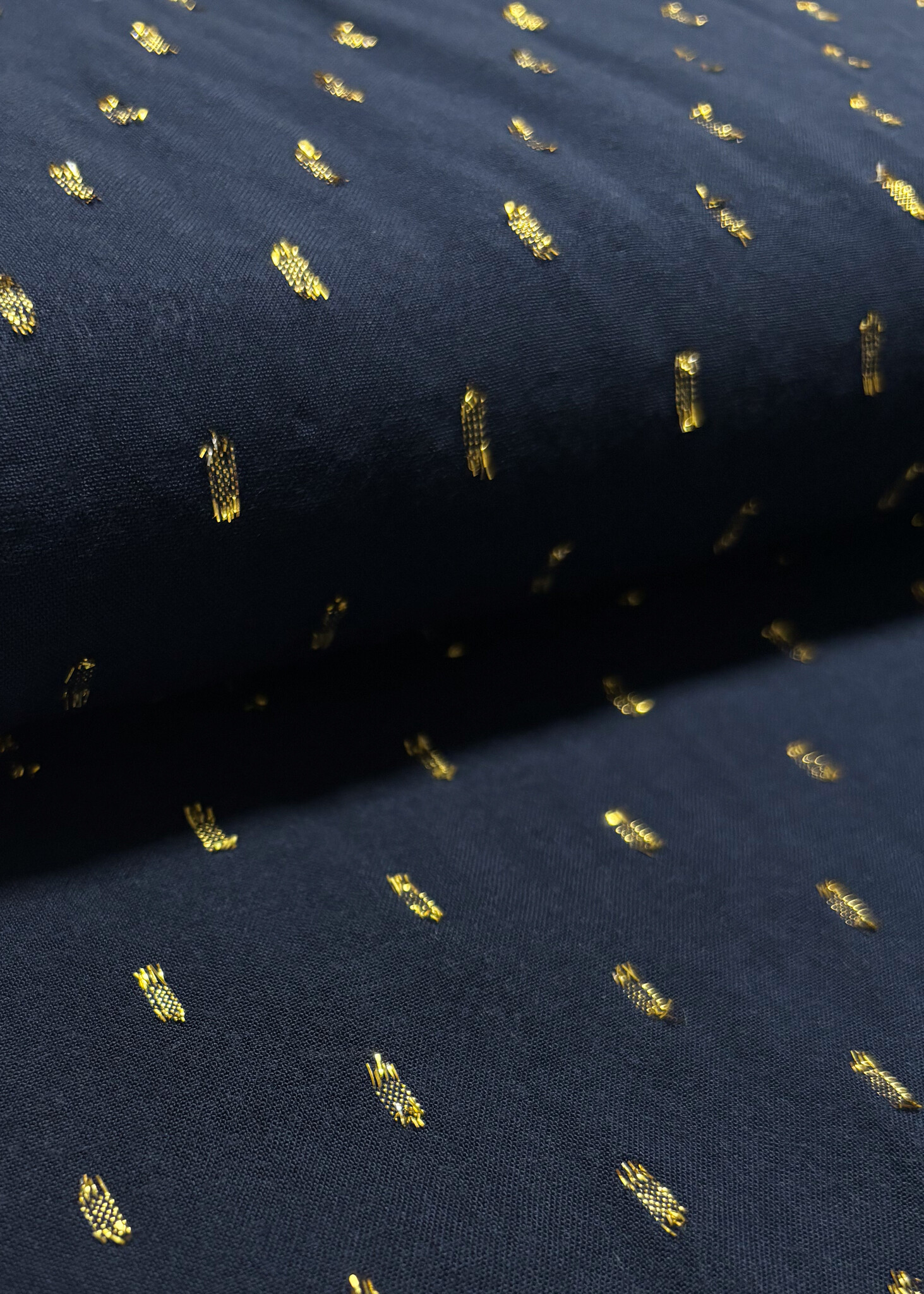 marineblauw touch of gold - geweven viscose - Madeline de stoffenmadam - Stoffenwinkel Lier ( Antwerpen )