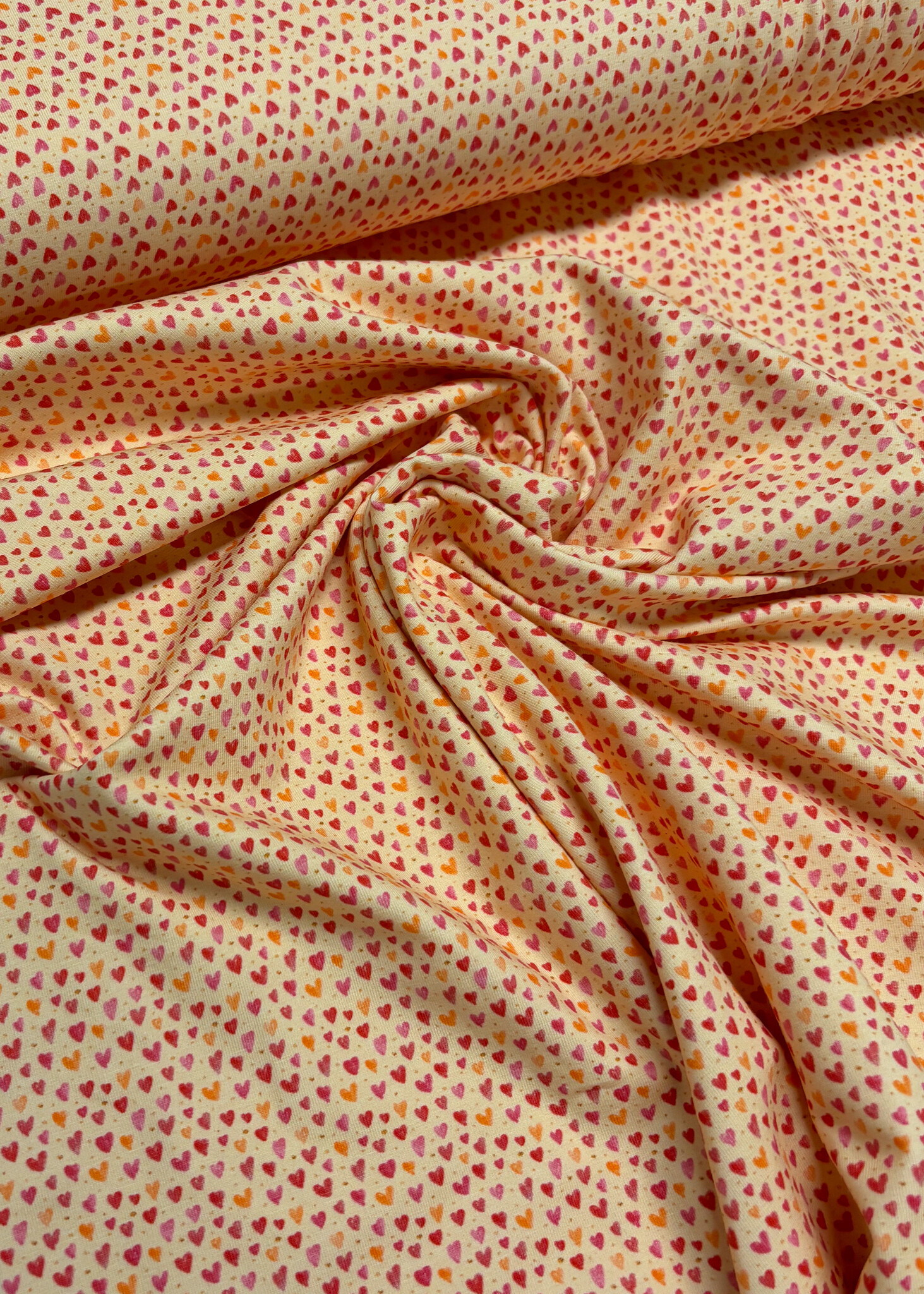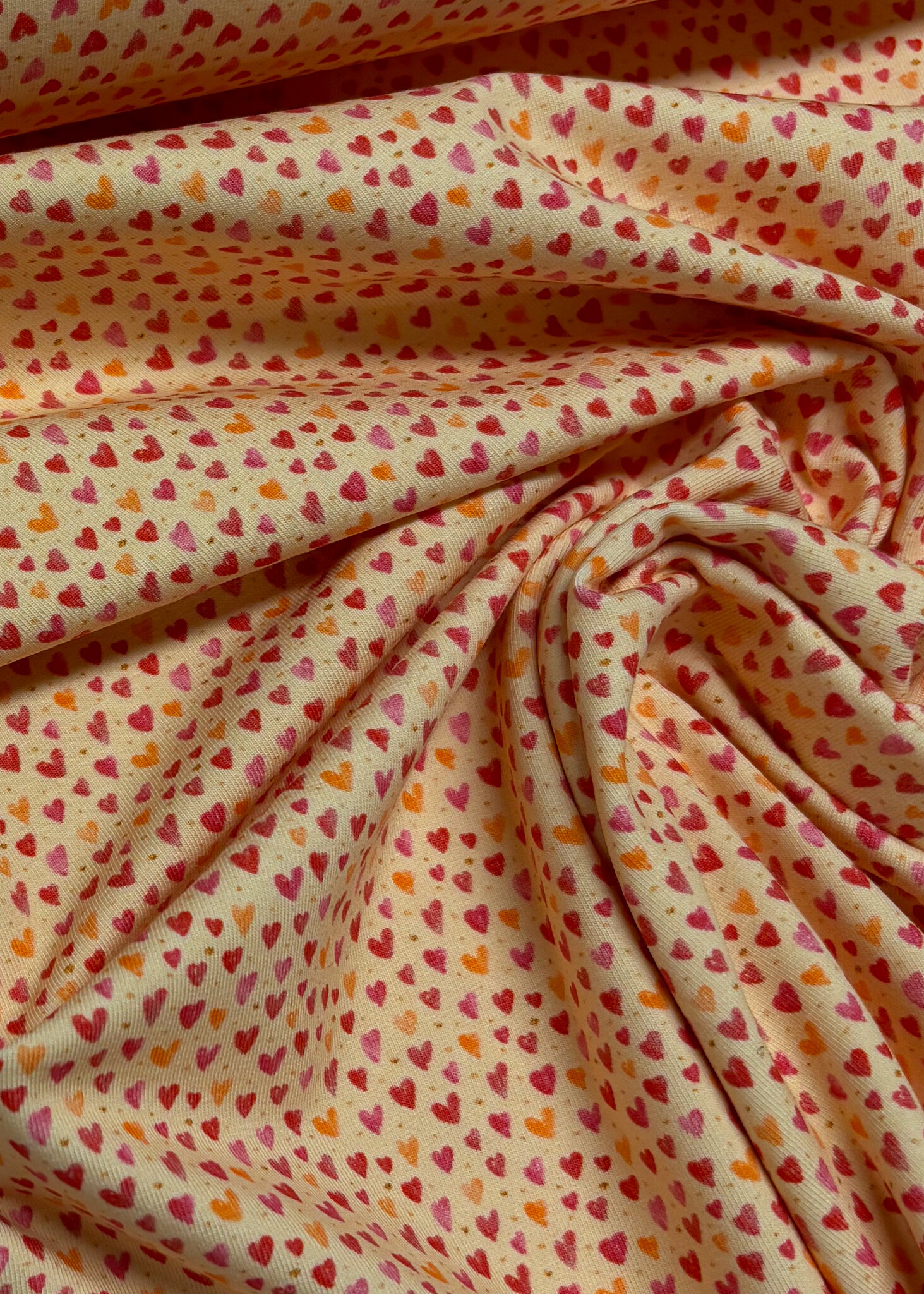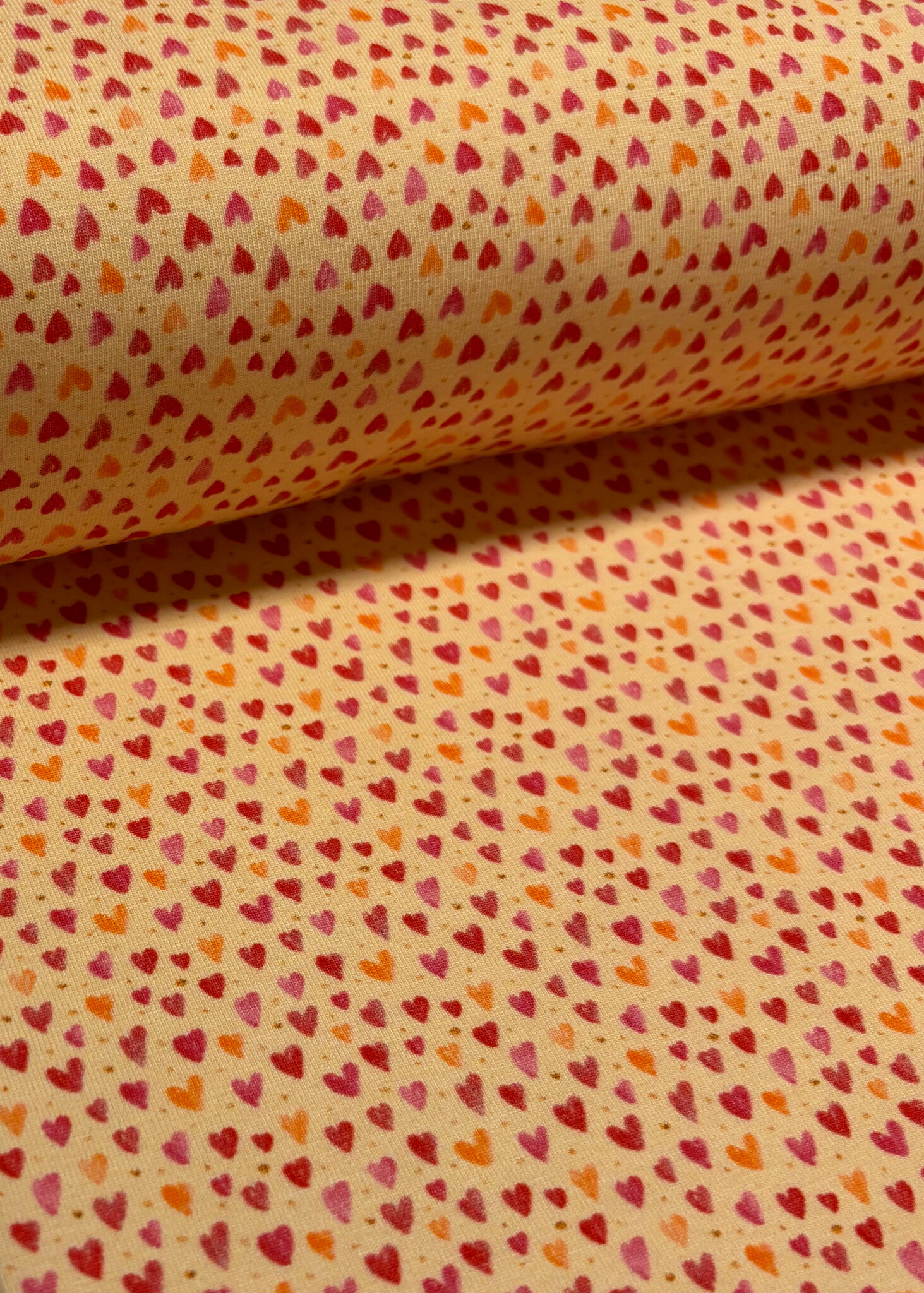 Een zachte tricot met hartjes. Swafing Stoffe.