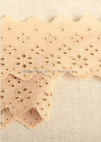 mokka - broderie lint 63 mm - dubbele rij bloemetjes - Madeline de stoffenmadam - Stoffenwinkel Lier ( Antwerpen )