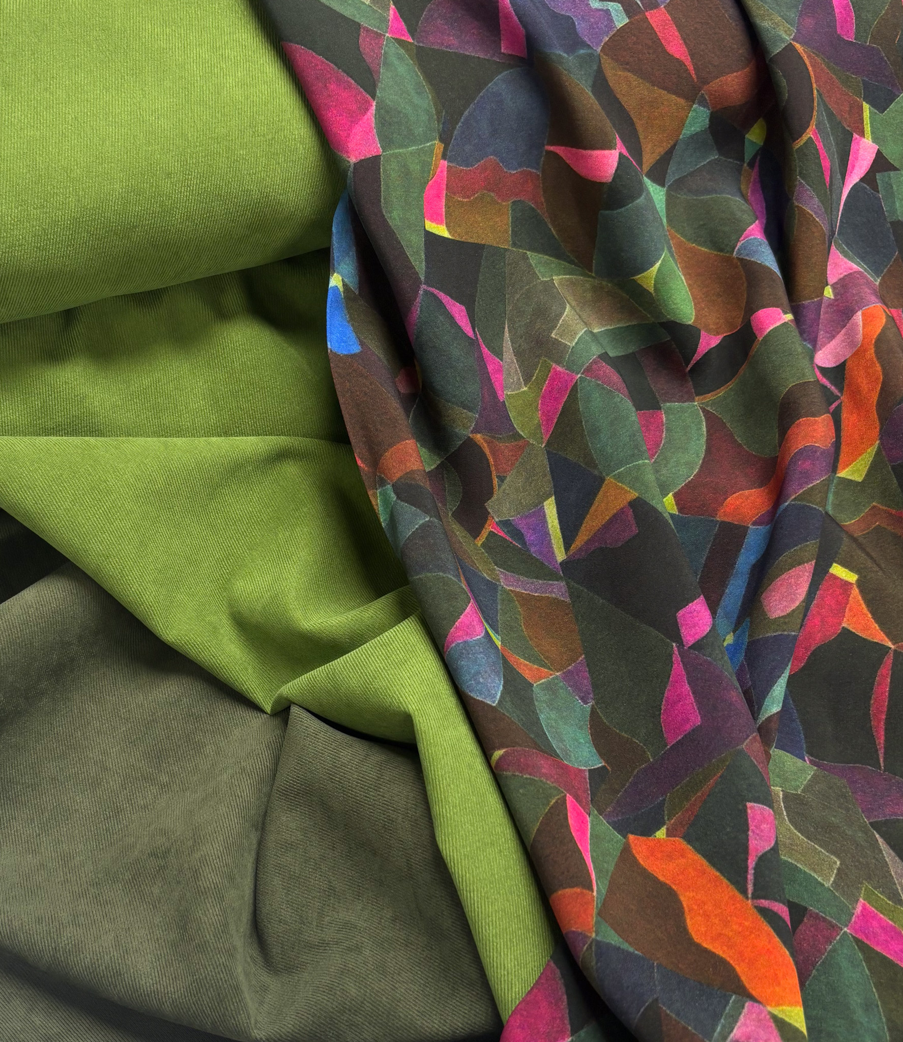 mosgroen - prachtige velours met twill binding - Madeline de stoffenmadam - Stoffenwinkel Lier ( Antwerpen )